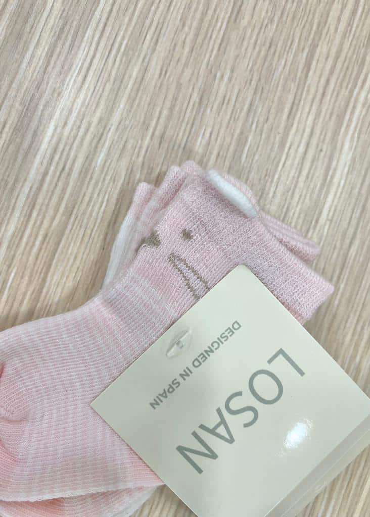 3 pack calzini neonata in cotone caldo, di colore rosa e bianco.