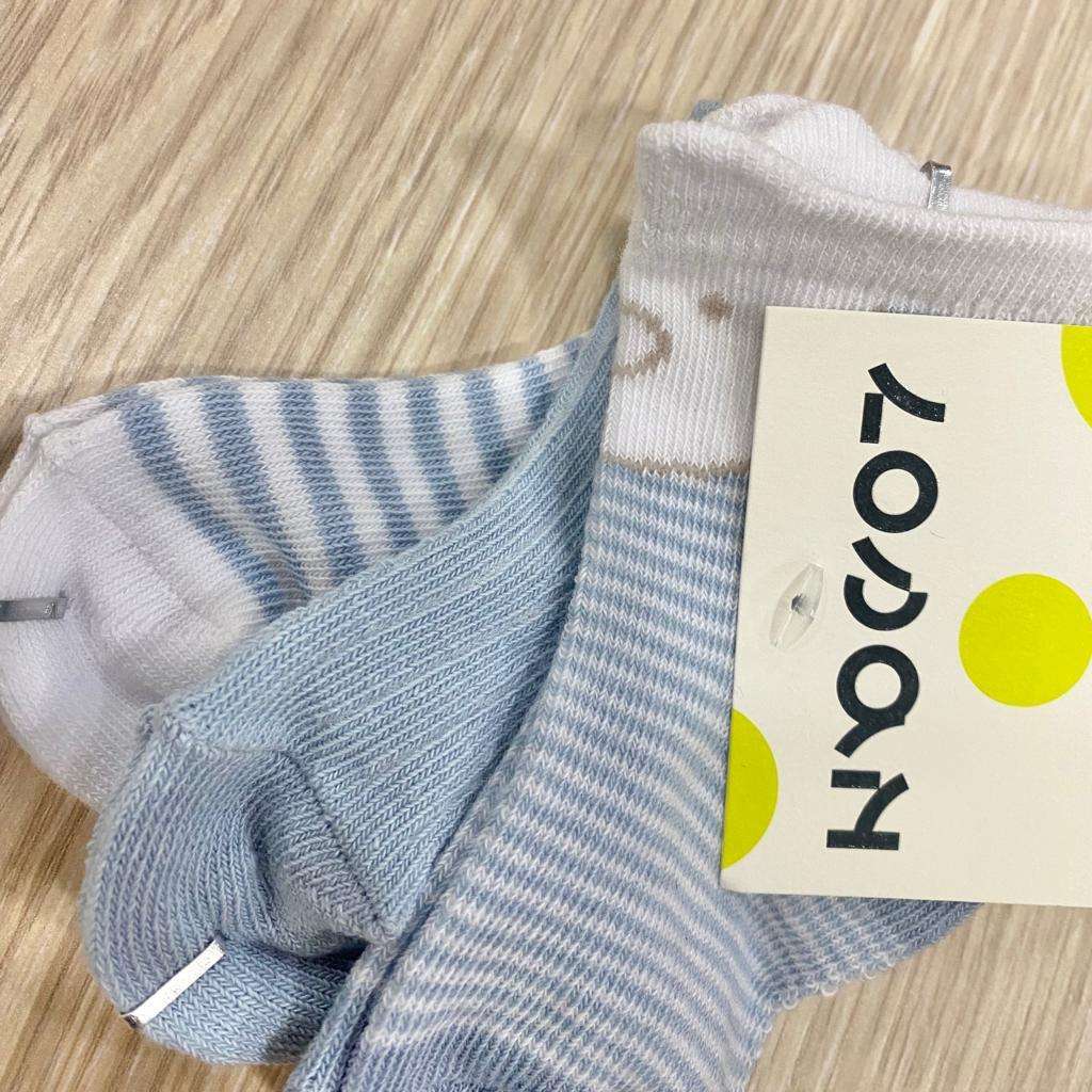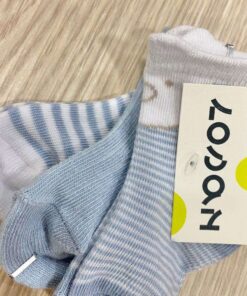 3 pack calzini neonato in caldo cotone di colore azzurro e bianco.
