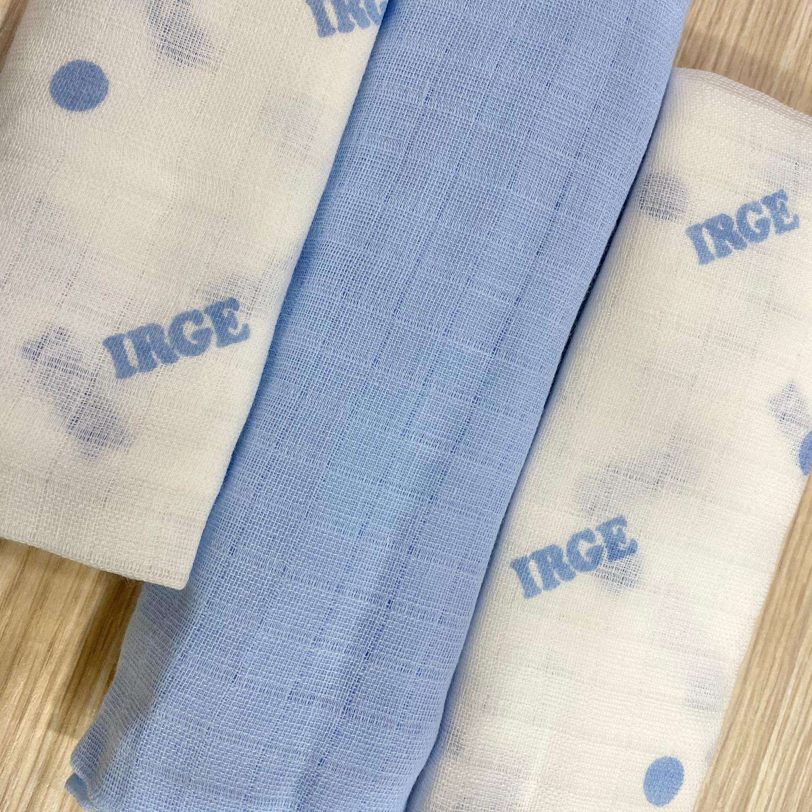 3 pack di quadrati di garza di colore bianco e azzurro.