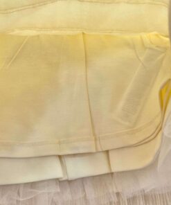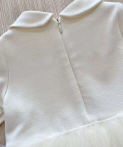 Abitino neonata/bambina in caldo cotone, di colore burro, con applicazione di tulle, chiusura con cerniera.