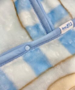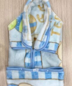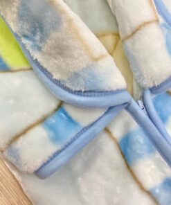 Baby sacco neonato in morbido pile cinigliato di colore azzurro e dettagli di vari colori. Baby sacco con cerniera e applicazione di bottoncini. Il baby sacco per il giorno e la notte. Baby sacco con 3 possibili soluzioni: