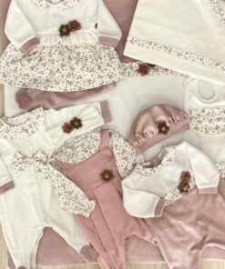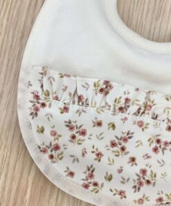 Bavetta neonata in cotone, di colore panna con fantasia floreale.