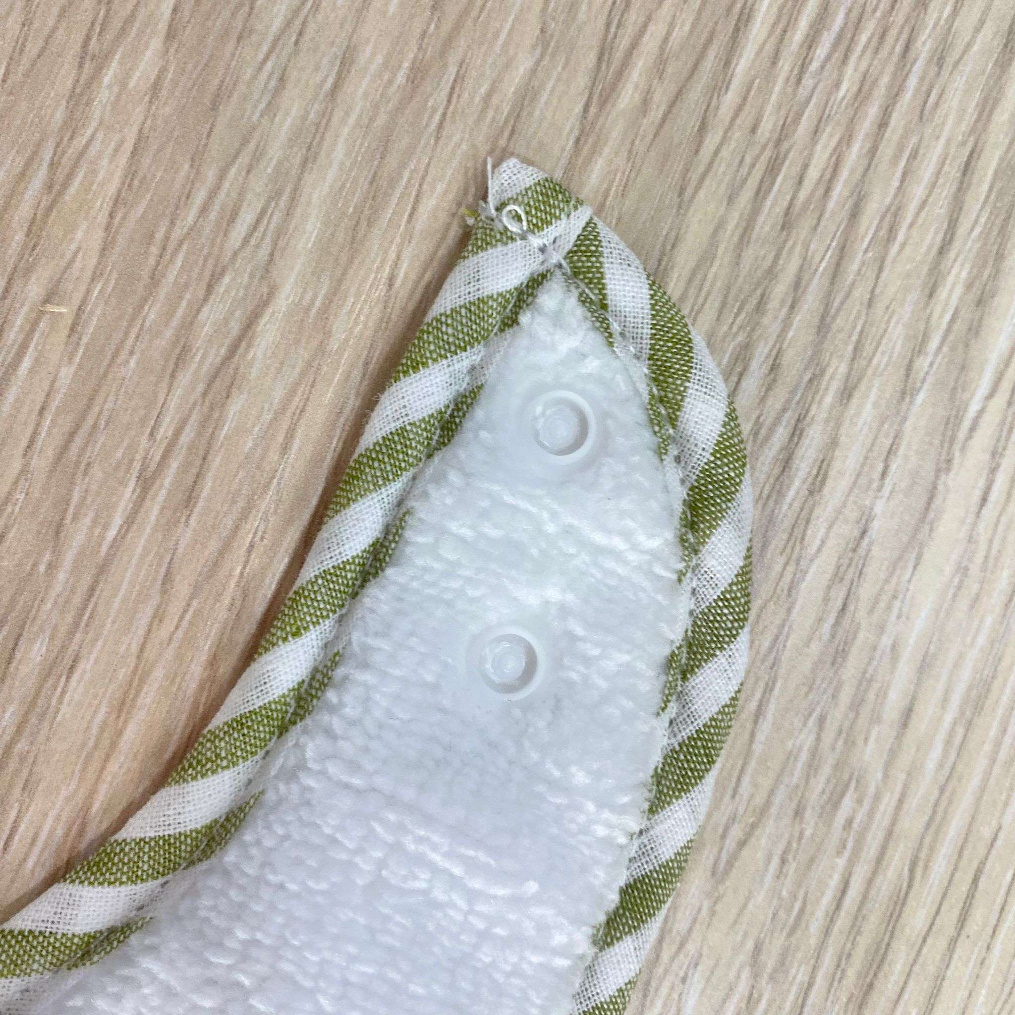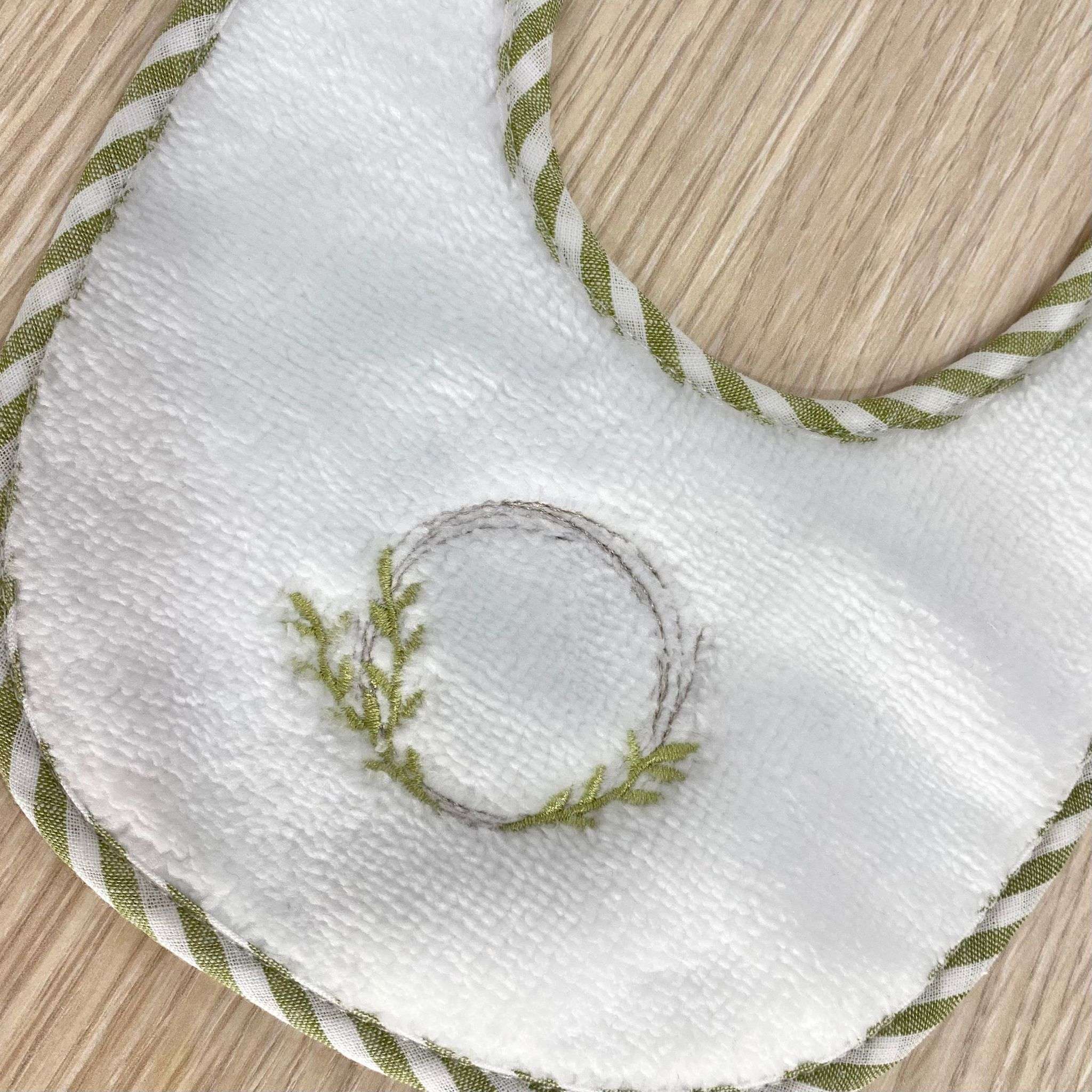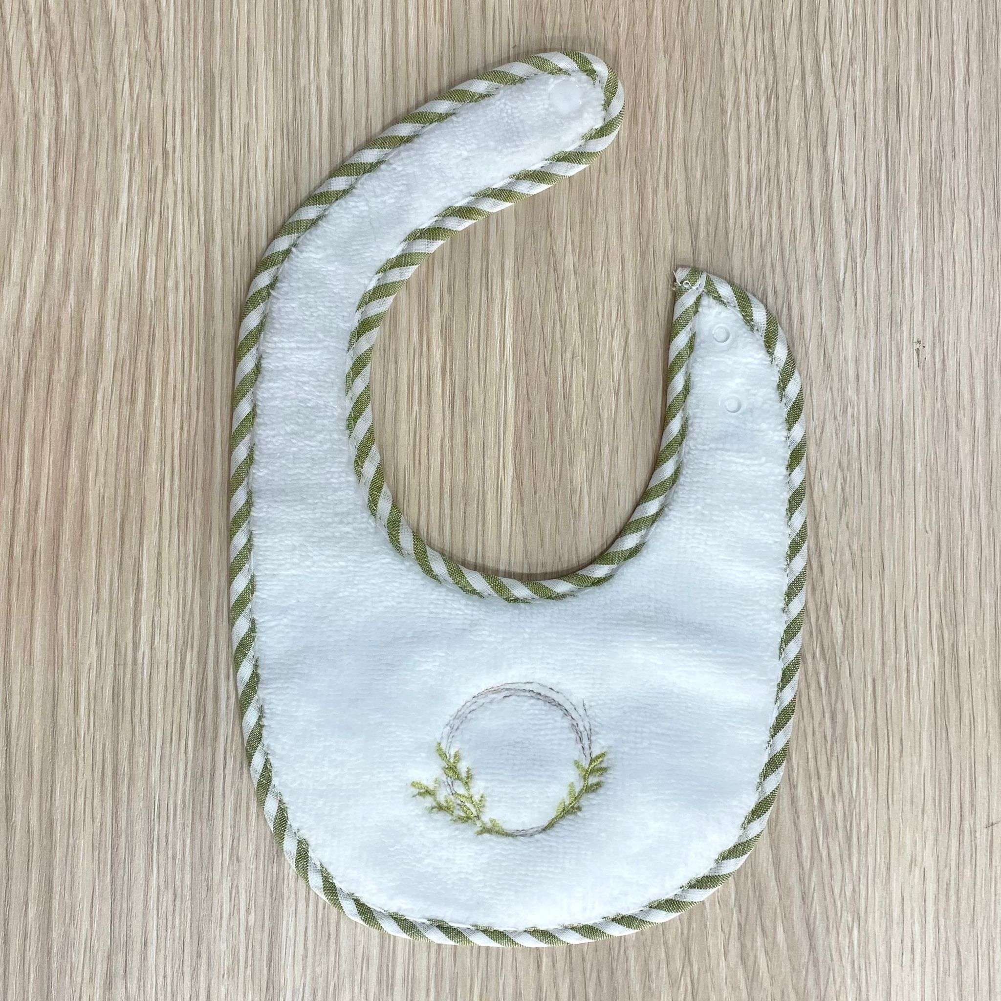 Bavetta neonato/a in spugna di cotone bio, di colore bianco e verde.