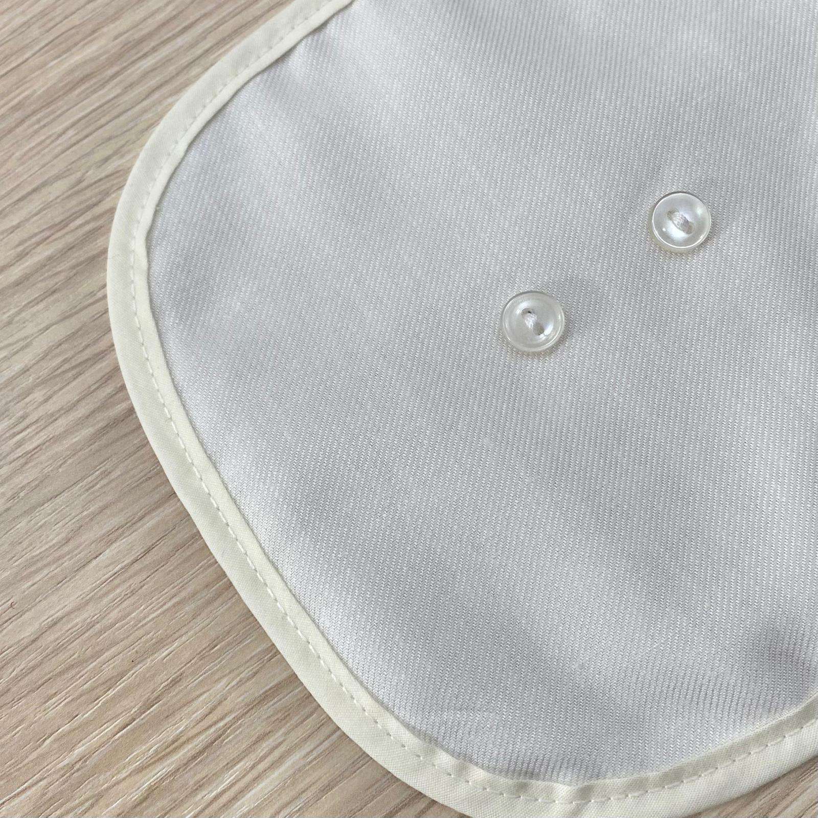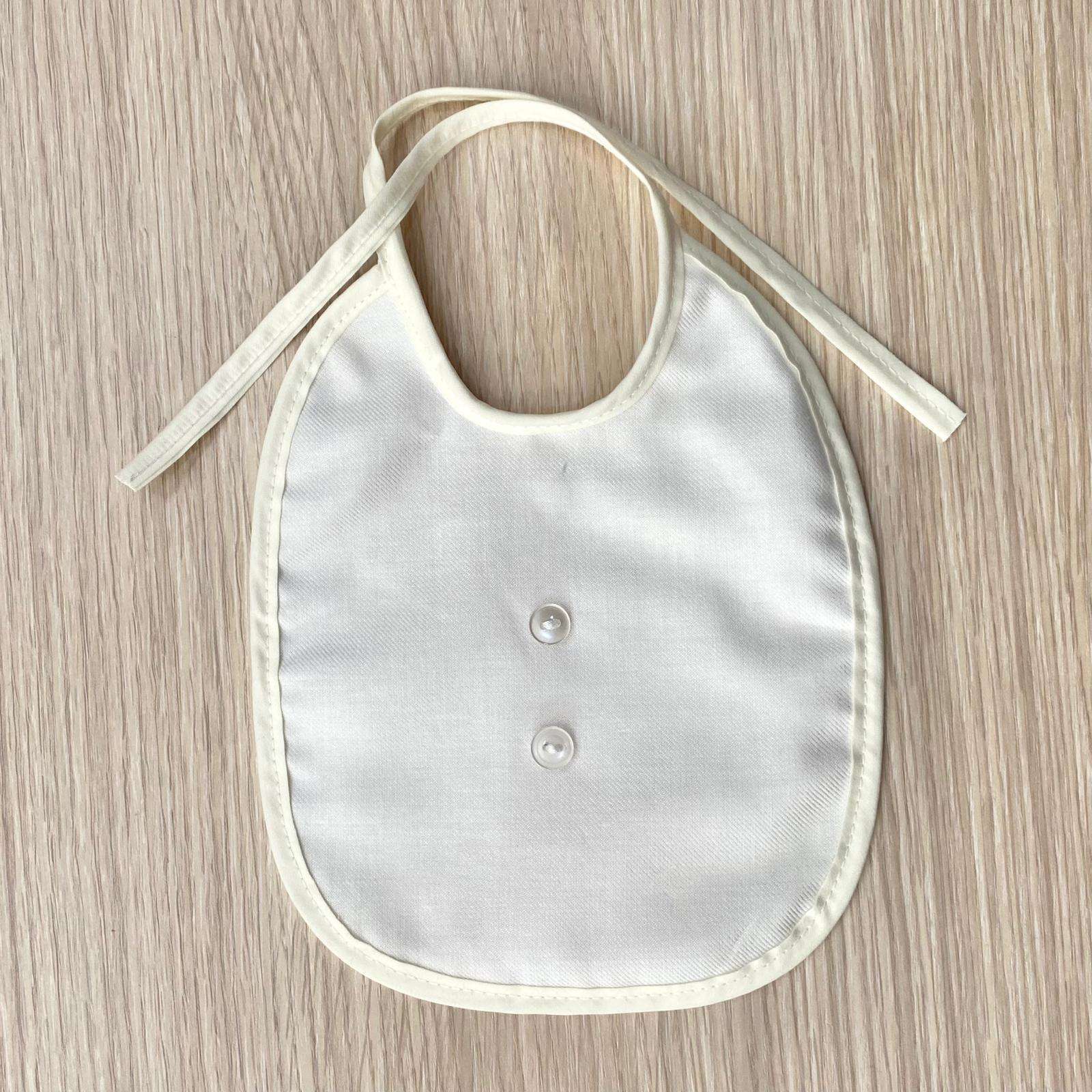 Bavetta neonato in cotone, di colore panna, con applicazione di bottoncini.