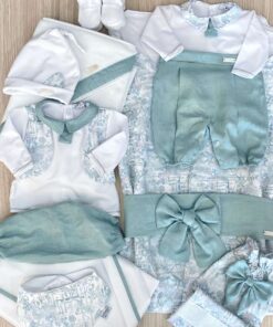 Bavetta neonato in cotone, di colore di colore bianco e verde, con applicazione di logo.