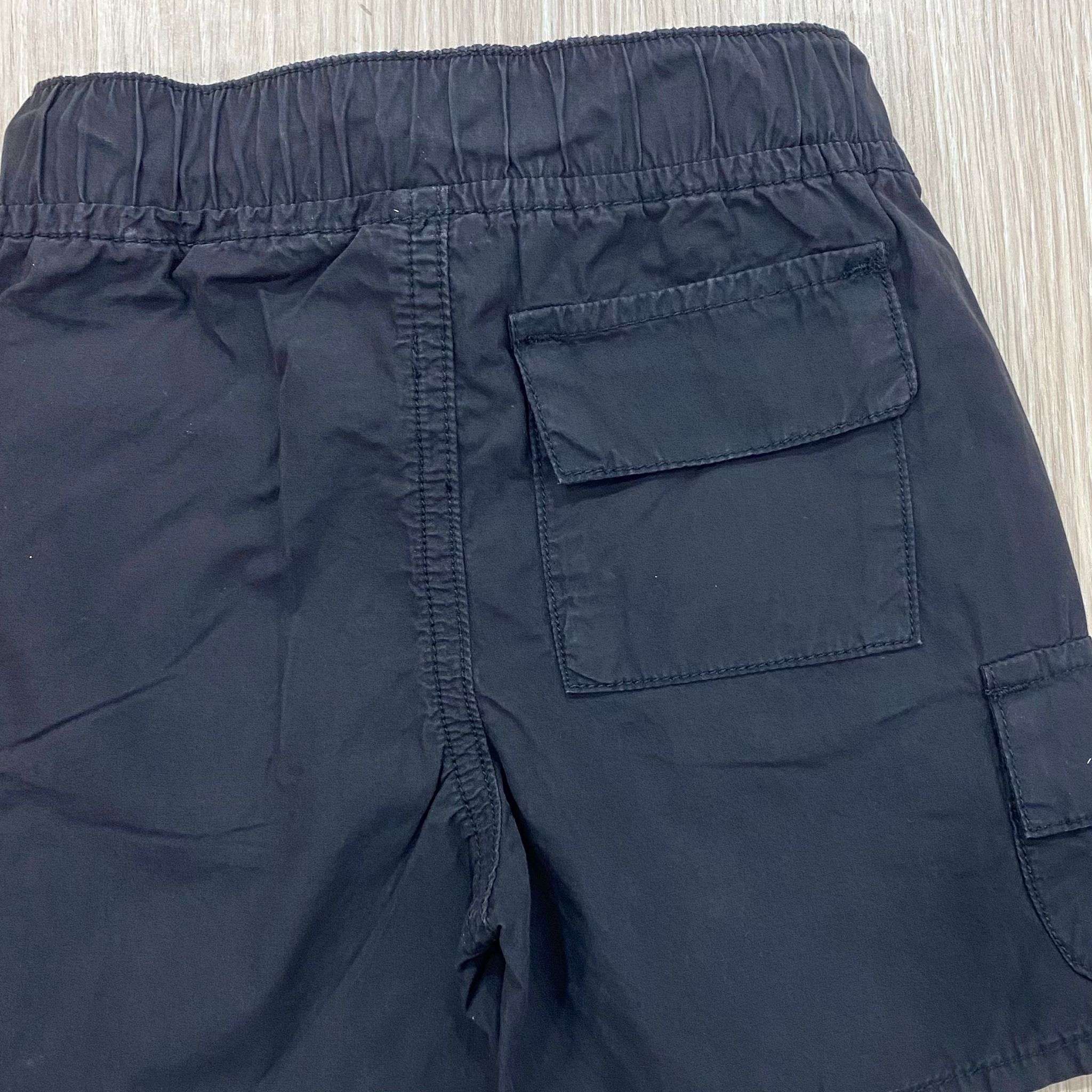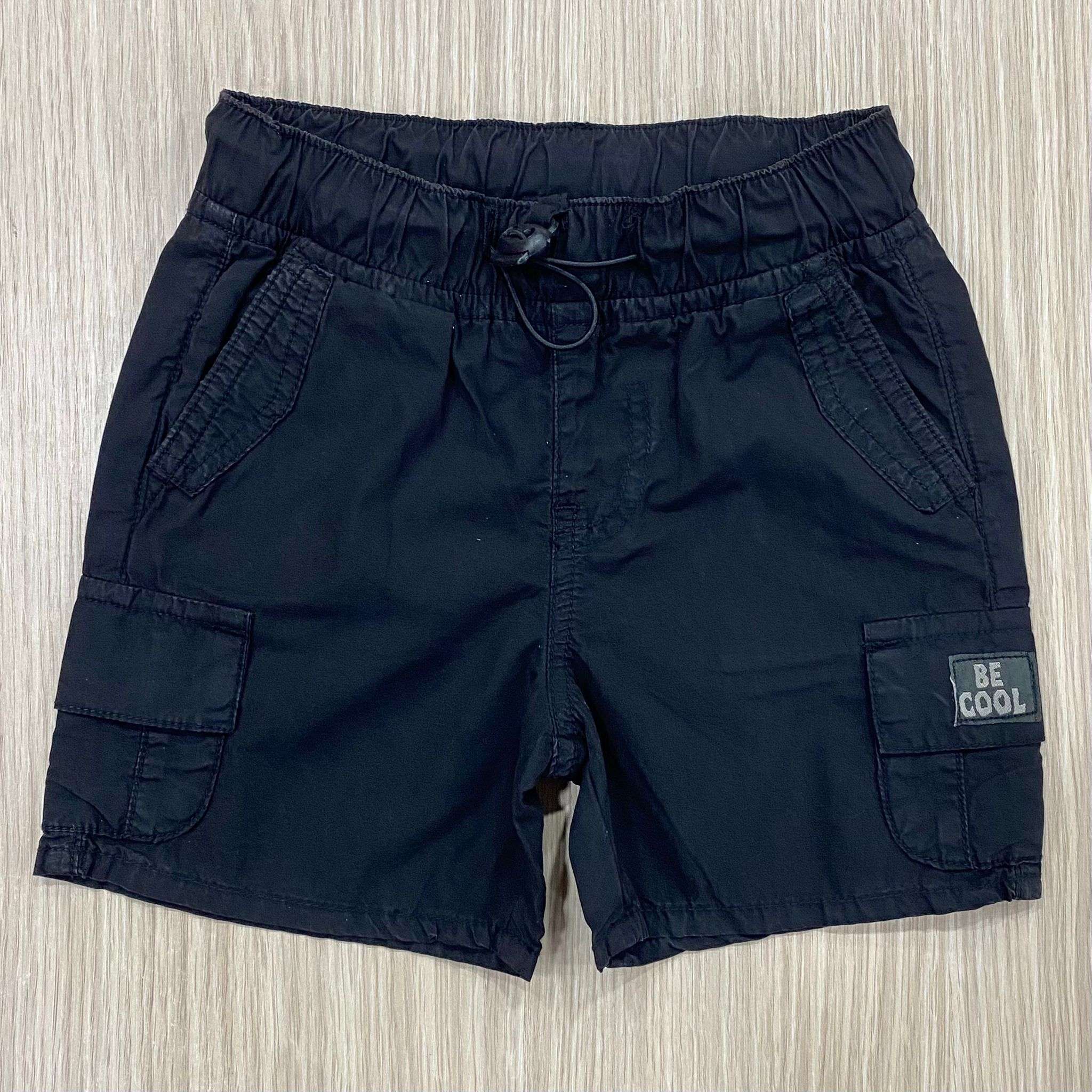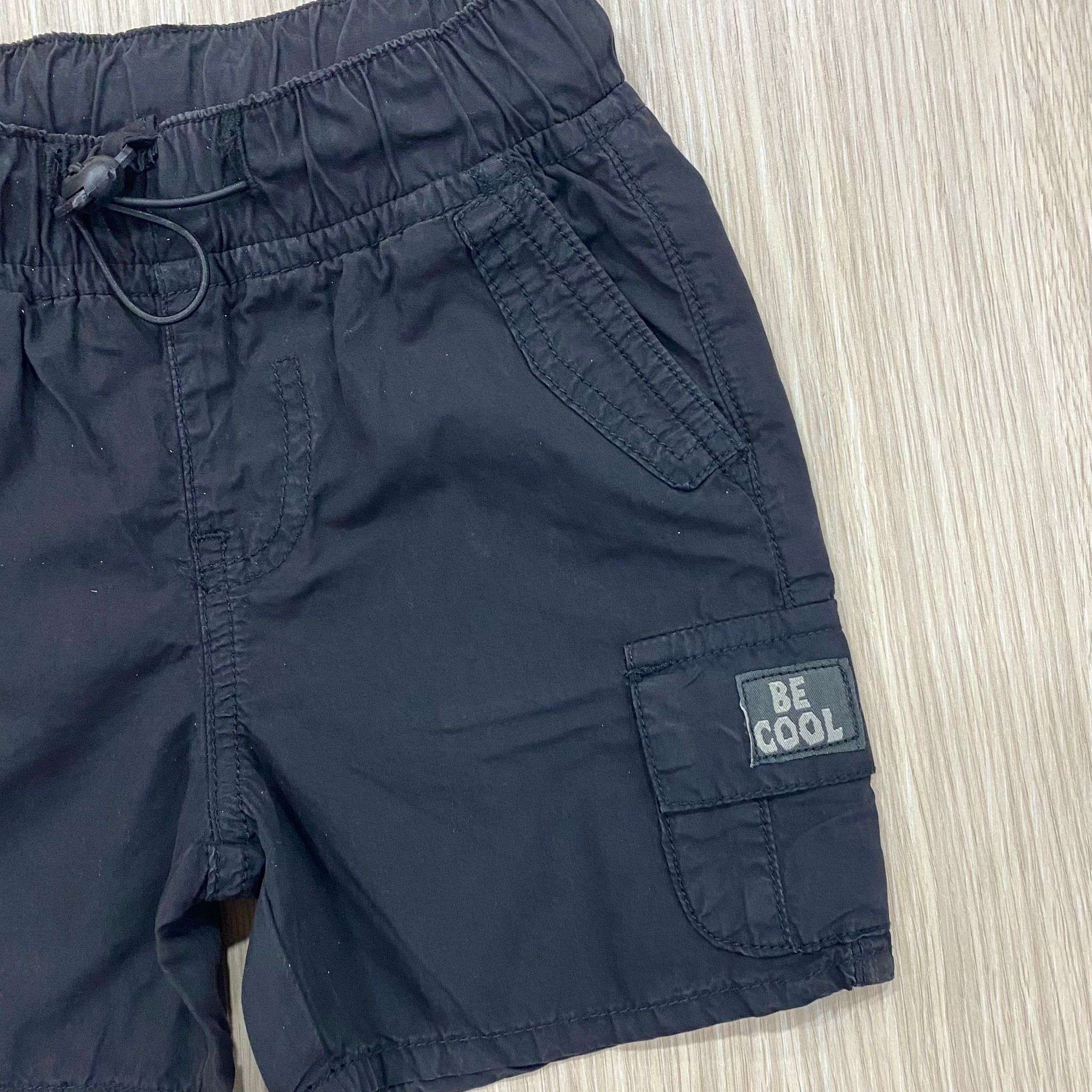Bermuda bambino in cotone, di colore grigio scuro, con dettaglio di tasconi laterali.