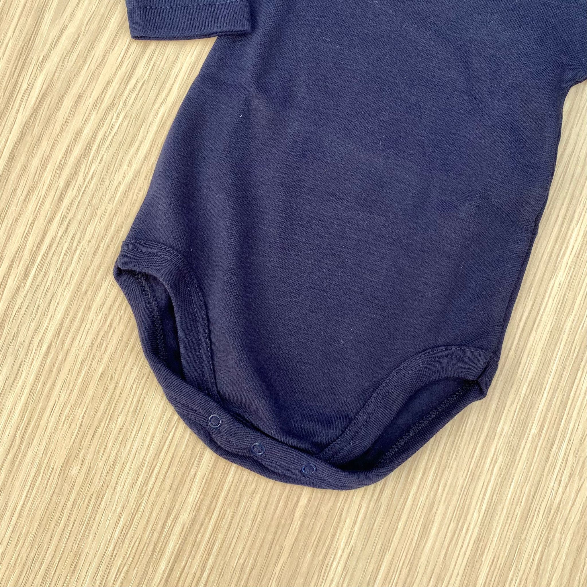 Body lupetto neonato/a, in caldo cotone leggermente felpato, di colore blu.