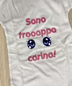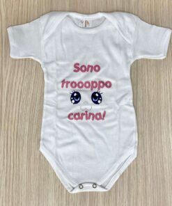 Body neonata in cotone a mezza manica con scritta “Sono troppo carina!”