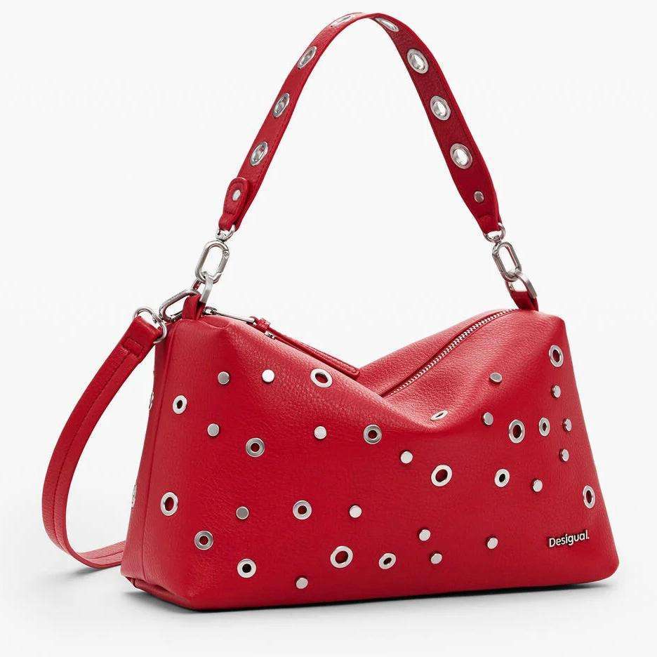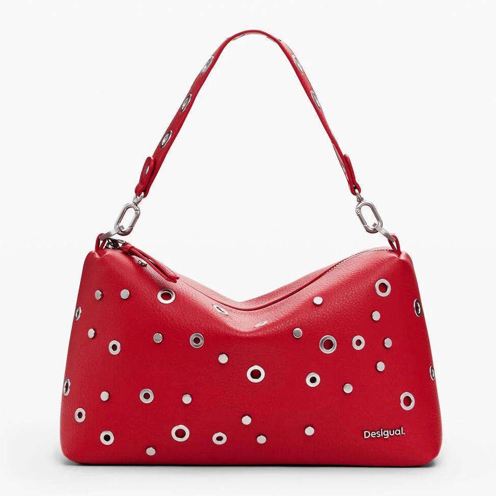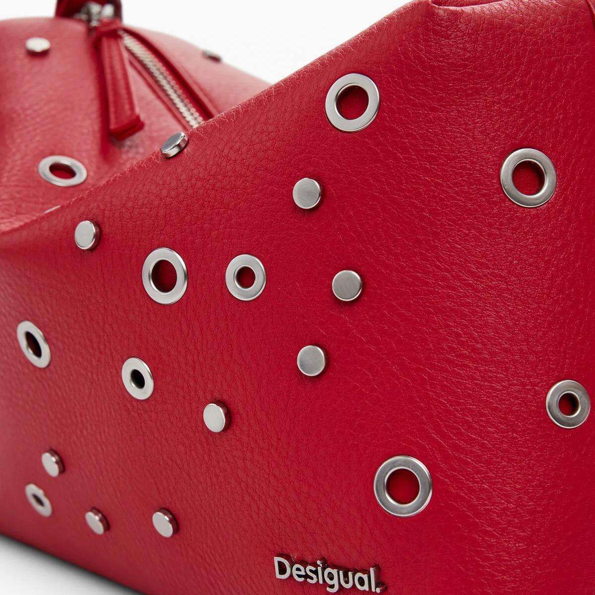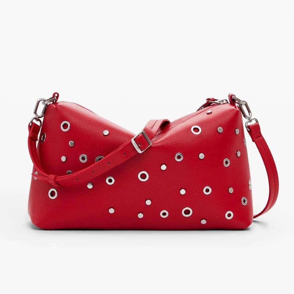 Borsa a mano effetto pelle decorata con borchie color argento. Borsa con tracolla.