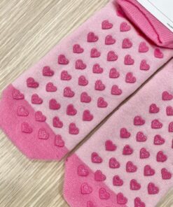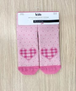 Calzino antiscivolo bambina/ragazza, in caldo cotone, di colore rosa con antiscivolo a forma di cuore.