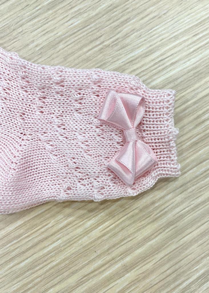 Calzino bambina in morbido filo makò di cotone, di colore rosa, con fiocco laterale in raso.
