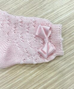 Calzino bambina in morbido filo makò di cotone, di colore rosa, con fiocco laterale in raso.