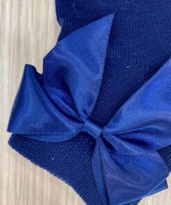 Calzino neonata/bambina in cotone, di colore blu applicazione con fiocco in raso.
