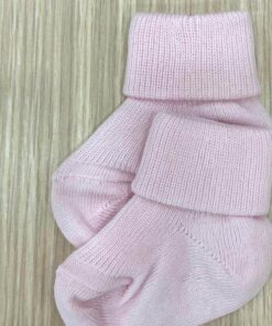Calzino neonato in caldo cotone di colore rosa.