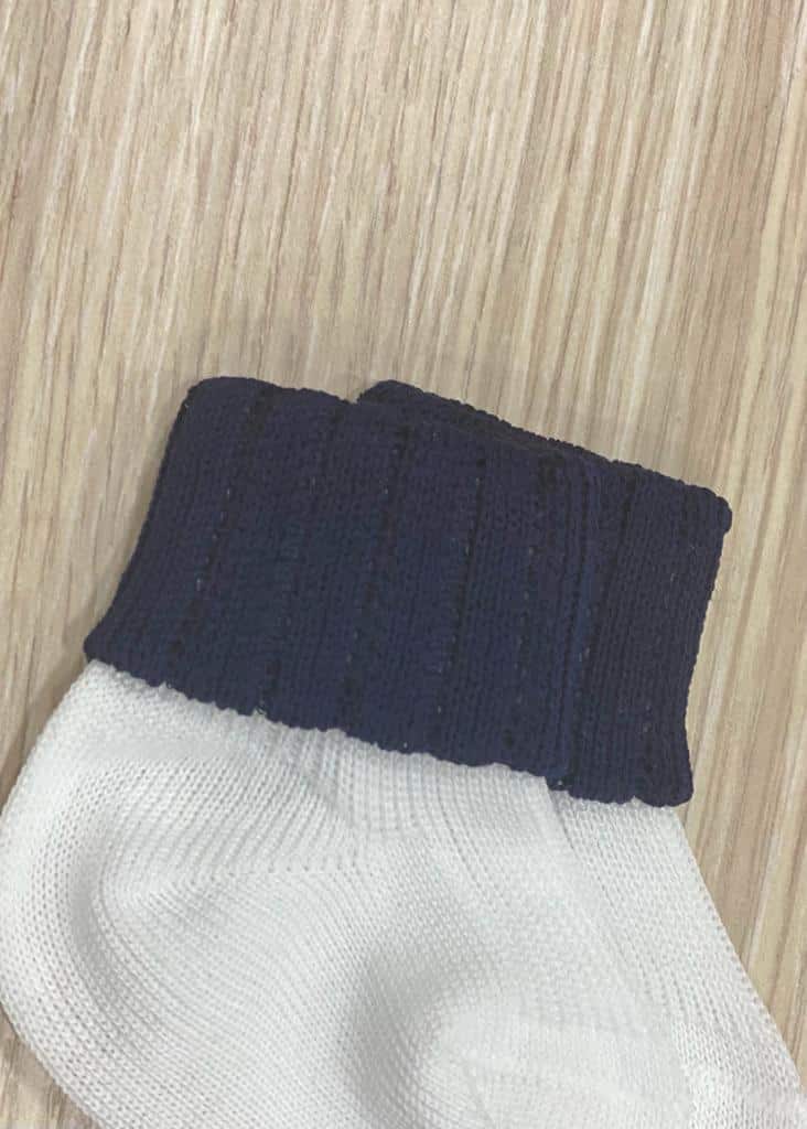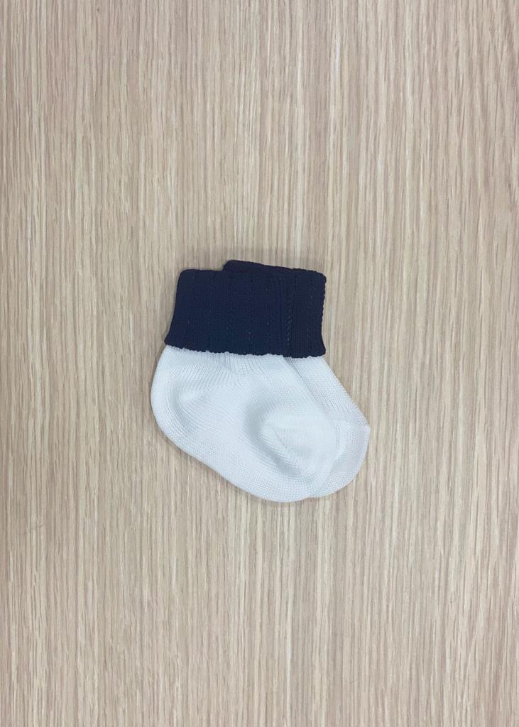 Calzino neonato/bambino in cotone, di colore bianco con dettaglio di colore blu.