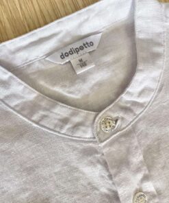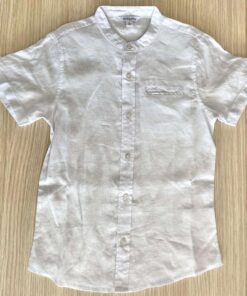 Camicia bambino/ragazzo in lino, di colore bianco, con dettaglio di taschino.