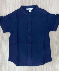 Camicia bambino in lino, di colore blu, con dettaglio di bottoncini.