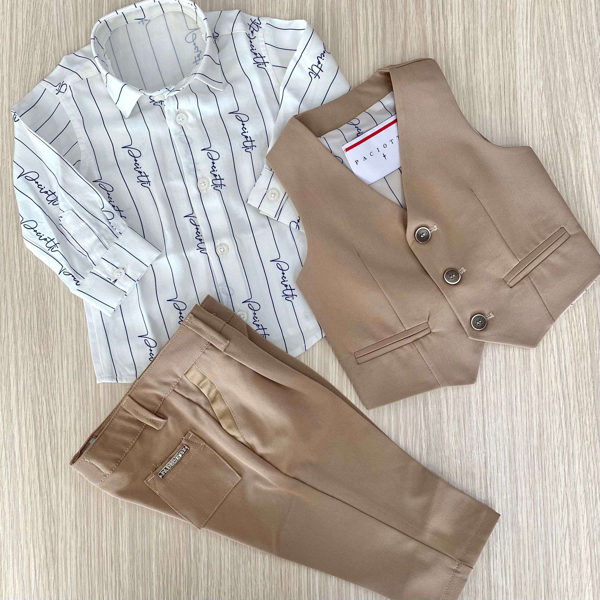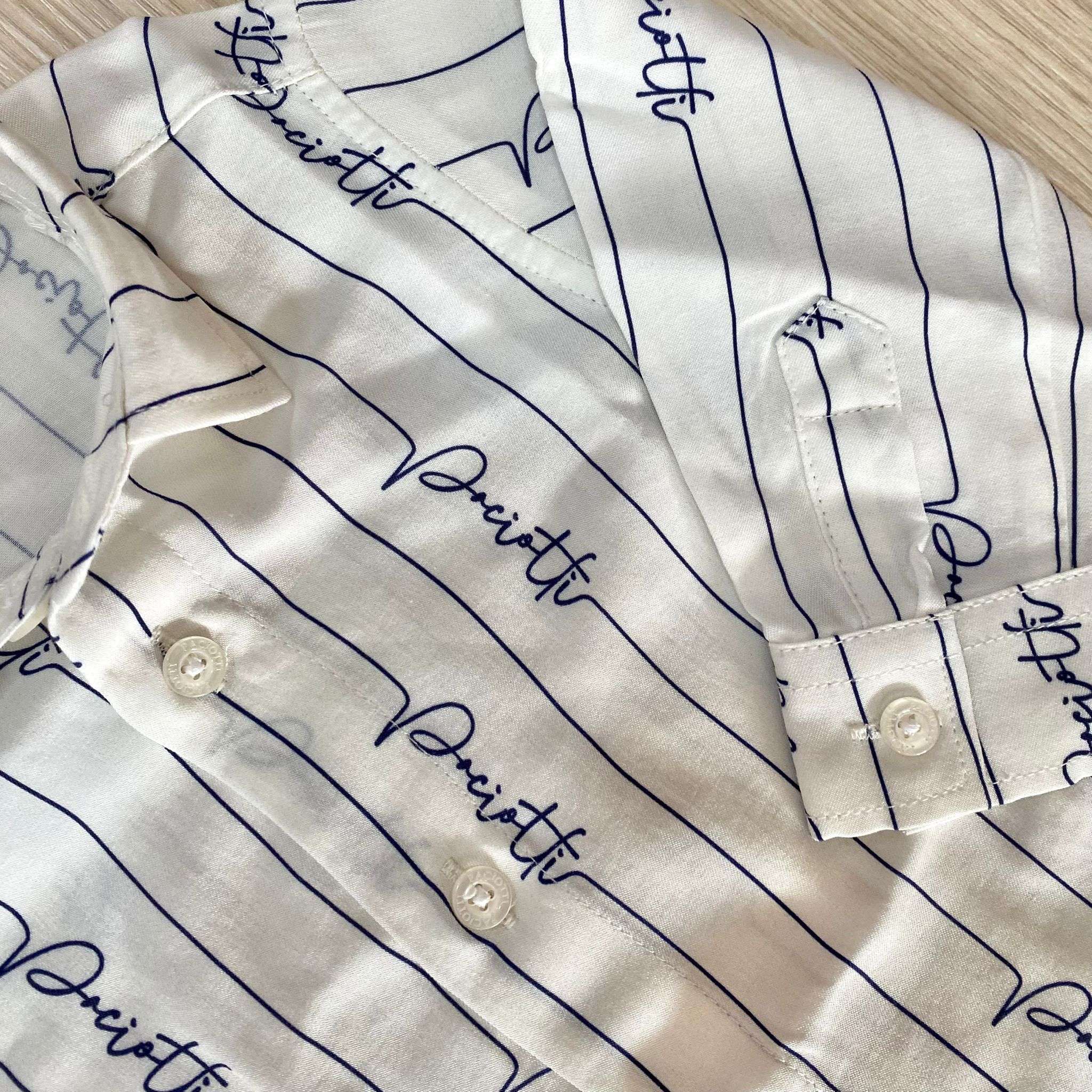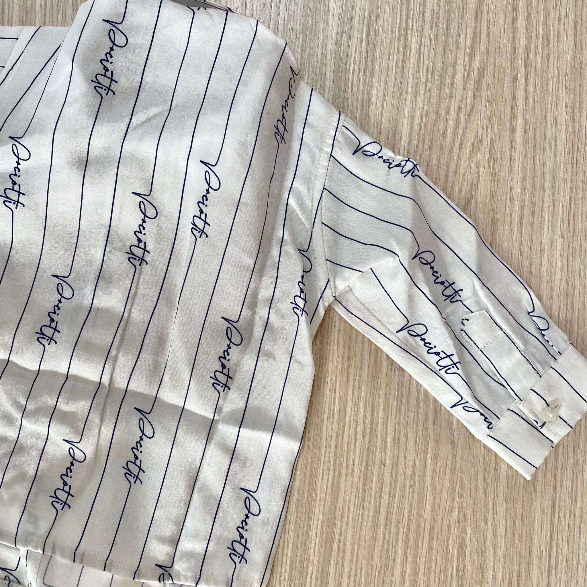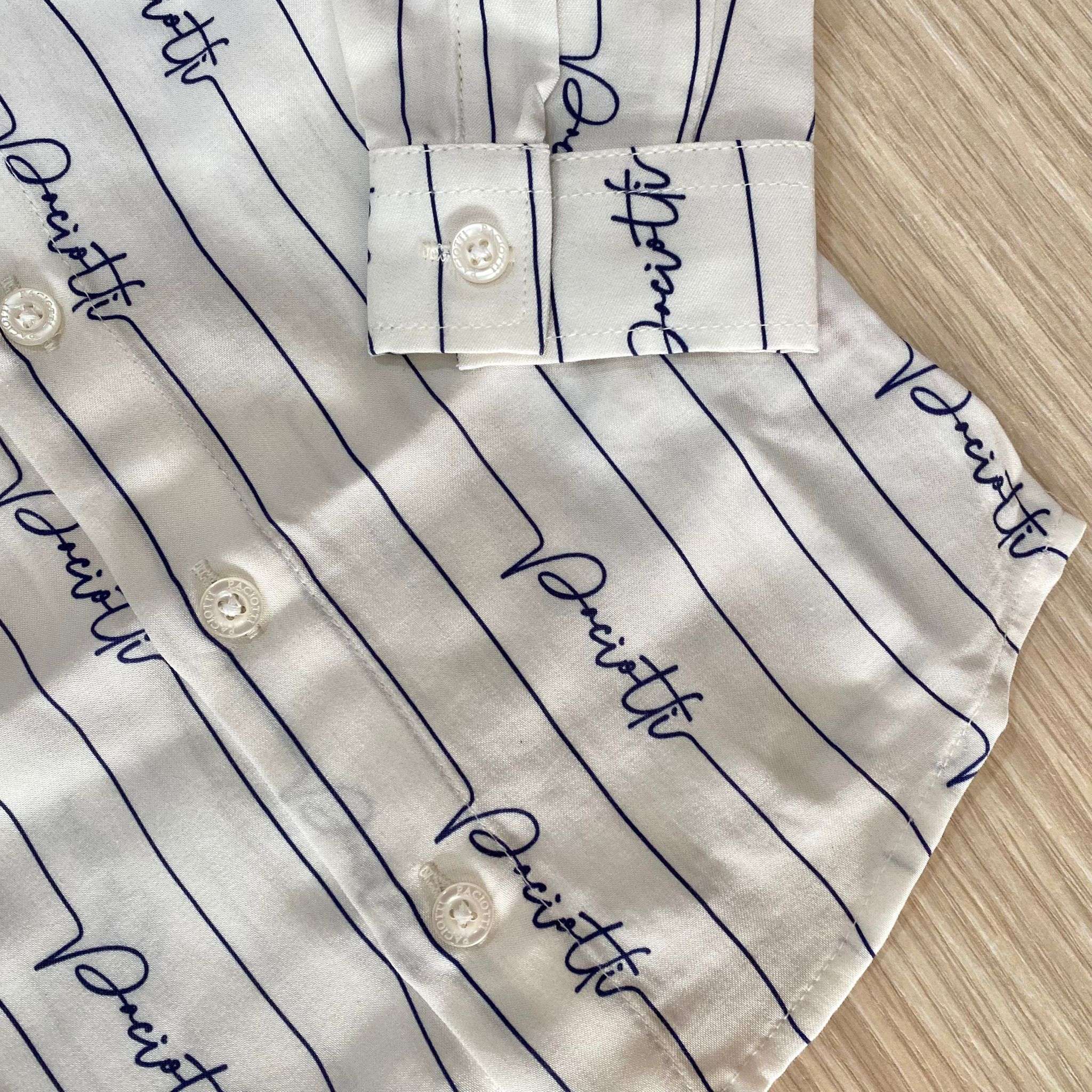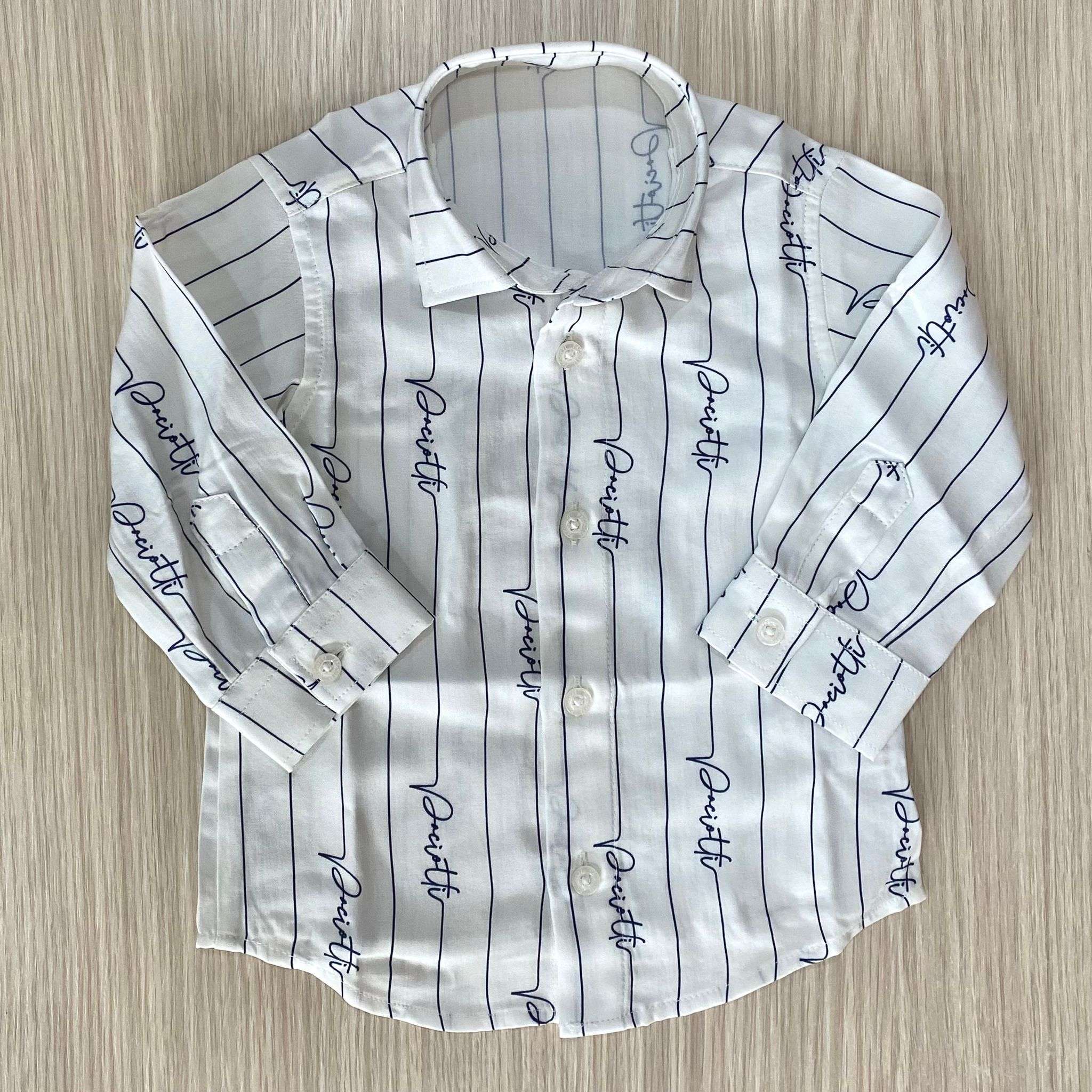 Camicia neonato/bambino in cotone, di colore panna e blu, con bottoncini.