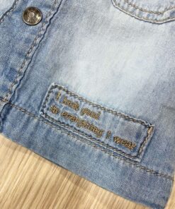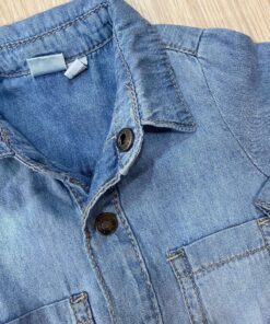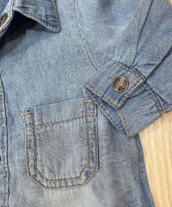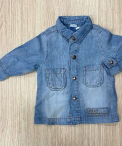 Camicia neonato/bambino in denim, in cotone. Camicia con taschini.