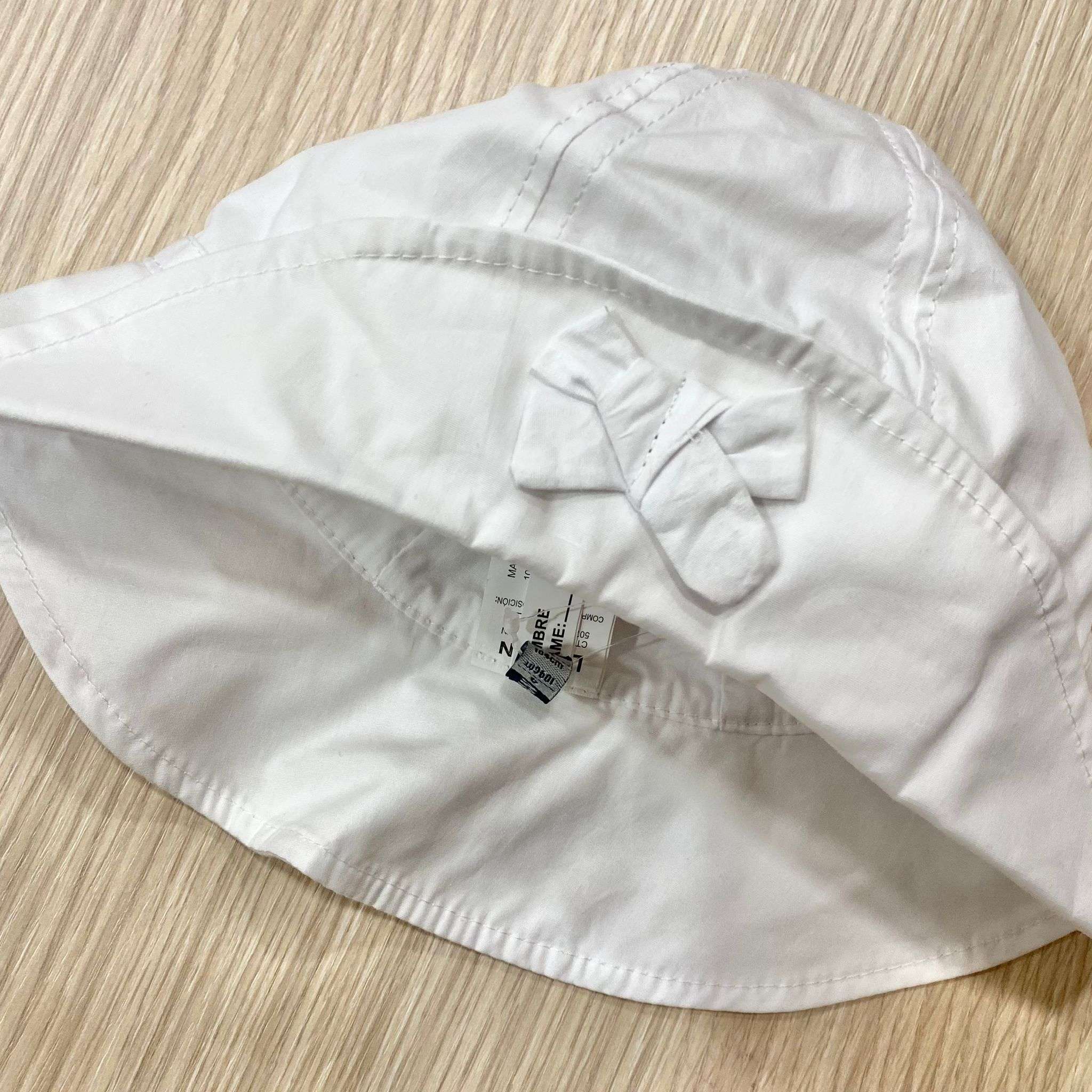 Cappellino in cotone di colore bianco con dettaglio centrale.