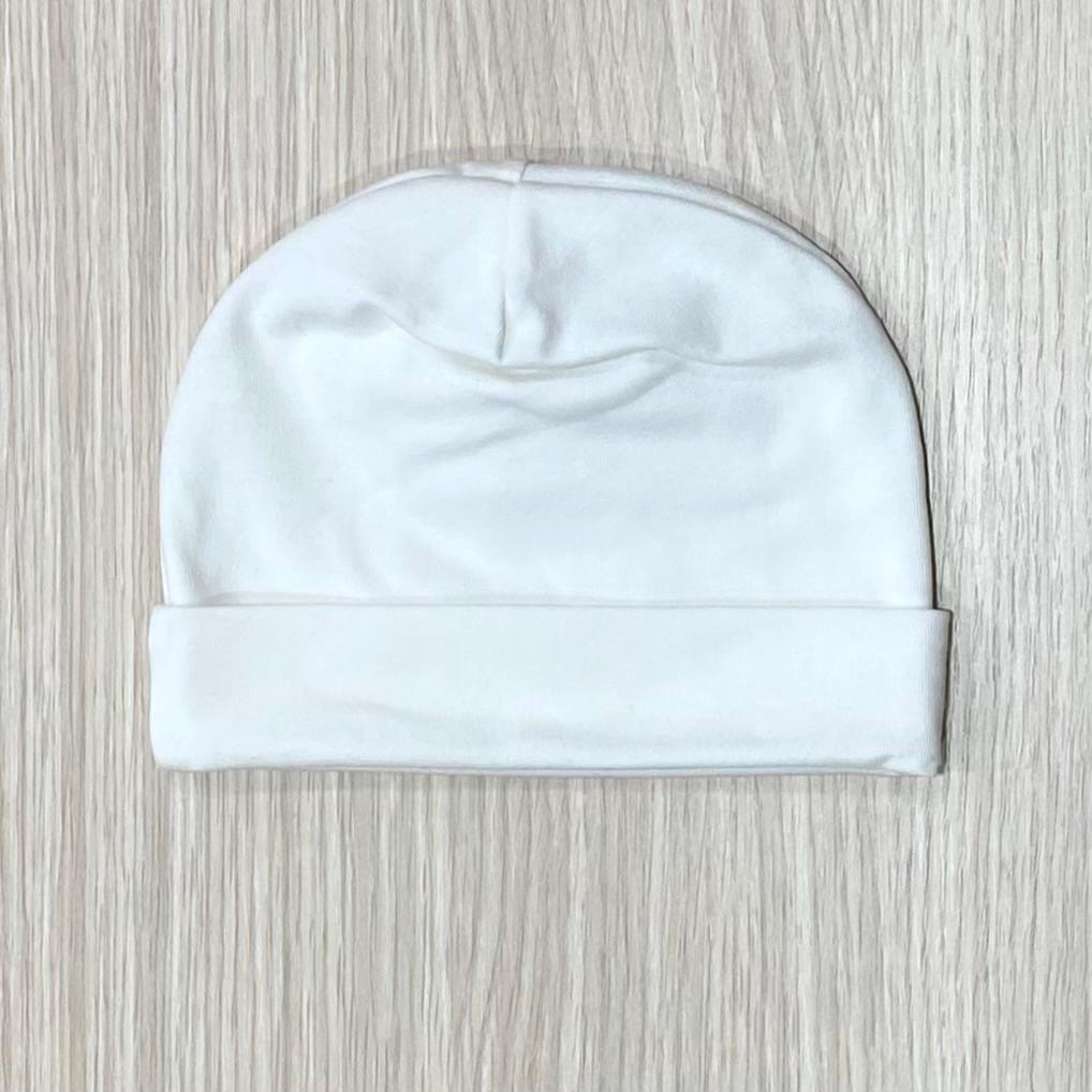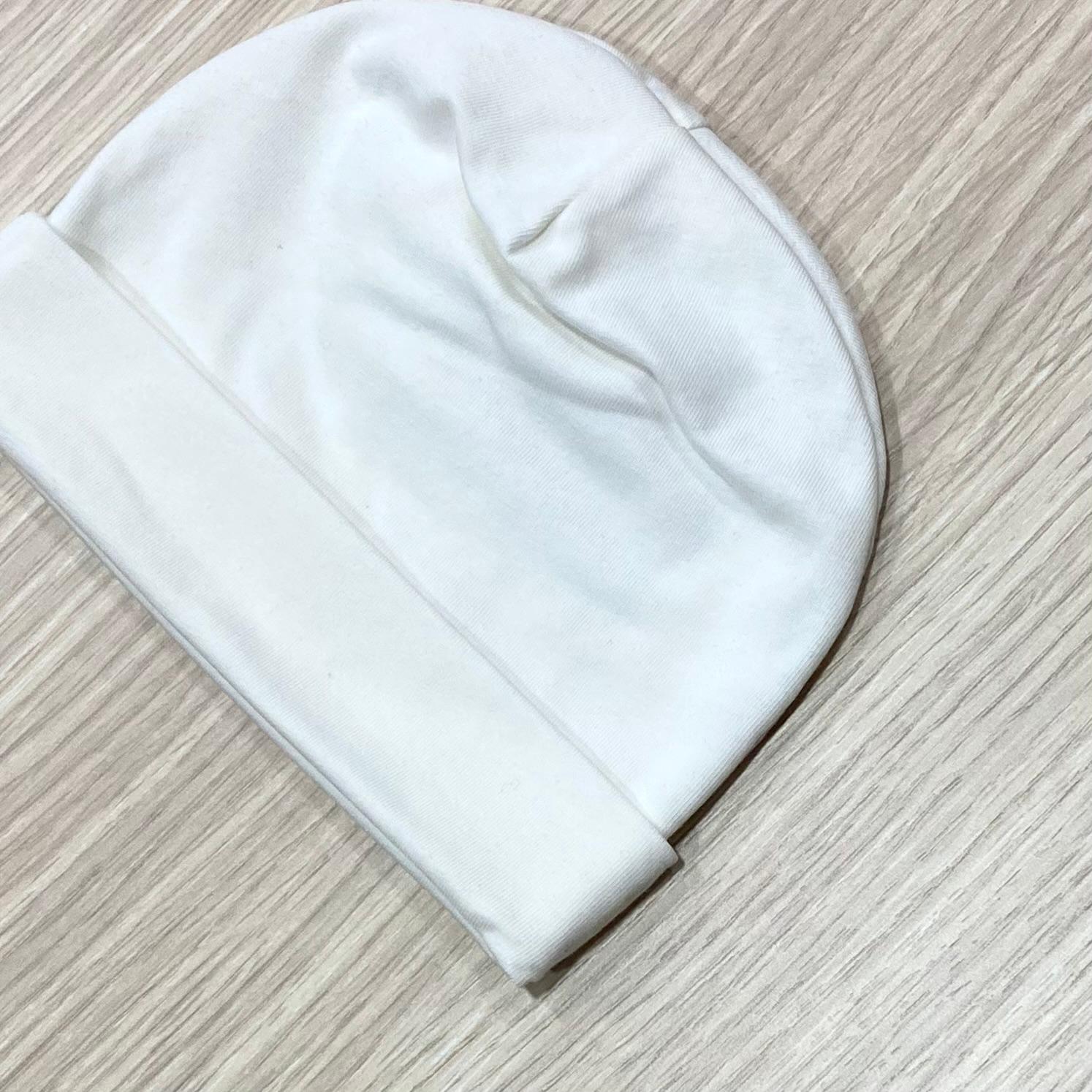 Cappellino neonata in cotone leggero, di colore panna ideale per neonata/o da abbinare facilmente ad ogni tutina anche colorata.