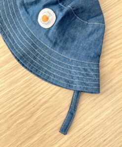 Cappellino neonato/bambino in cotone, di denim, con applicazione in rilievo.
