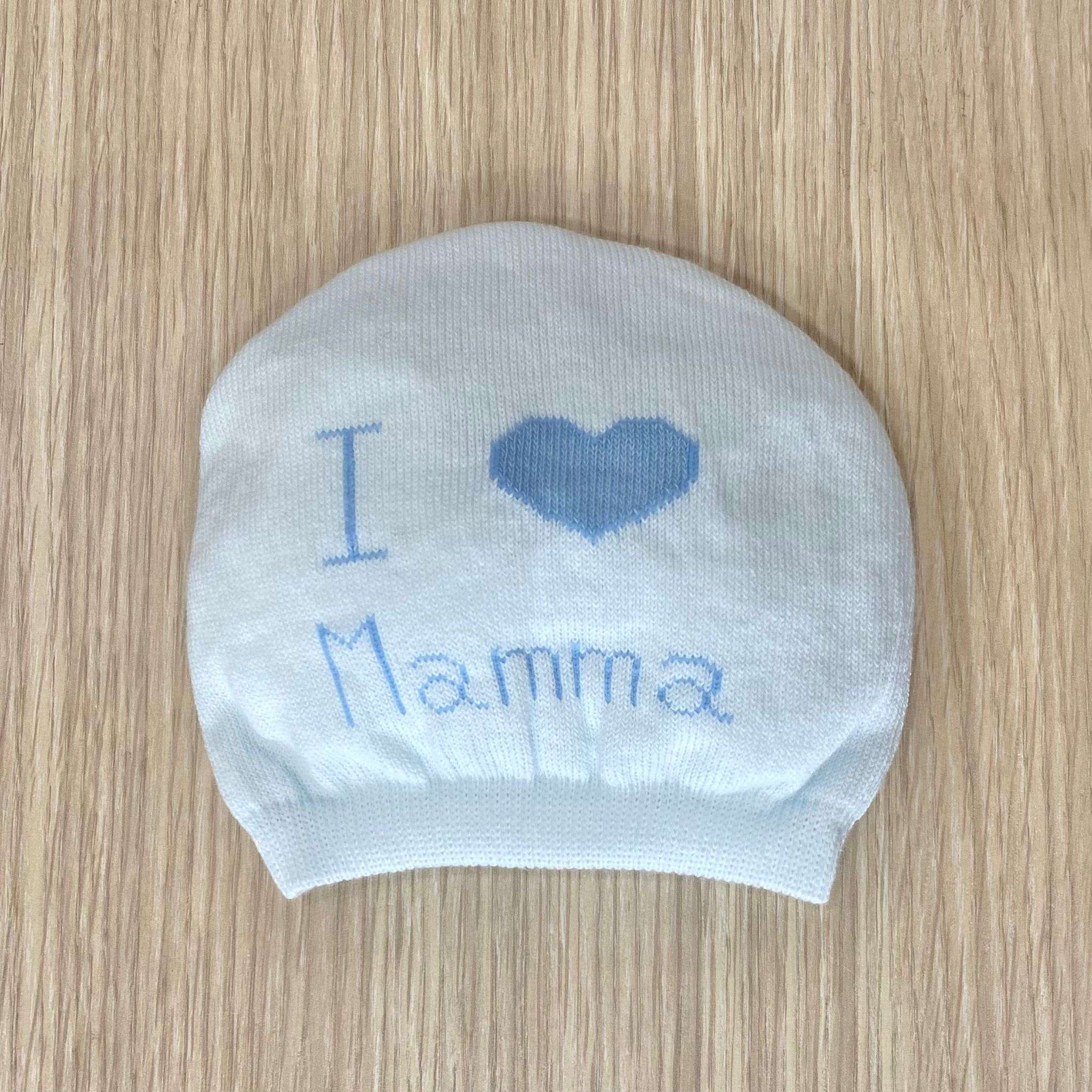 Cappellino neonato in caldo cotone, di colore azzurro.