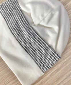 Cappellino neonato in caldo cotone, in doppio tessuto, di colore panna con dettaglio di quadretti.