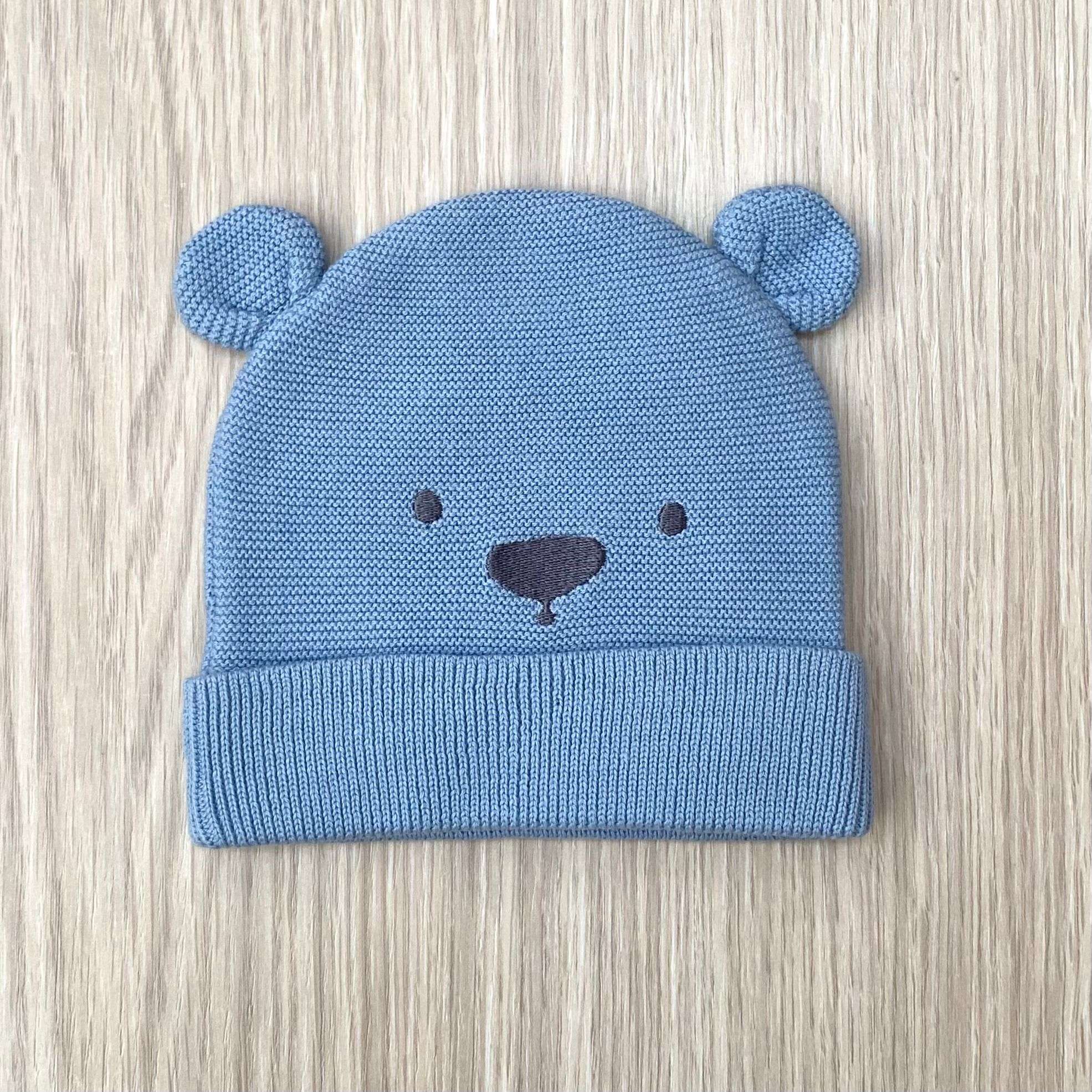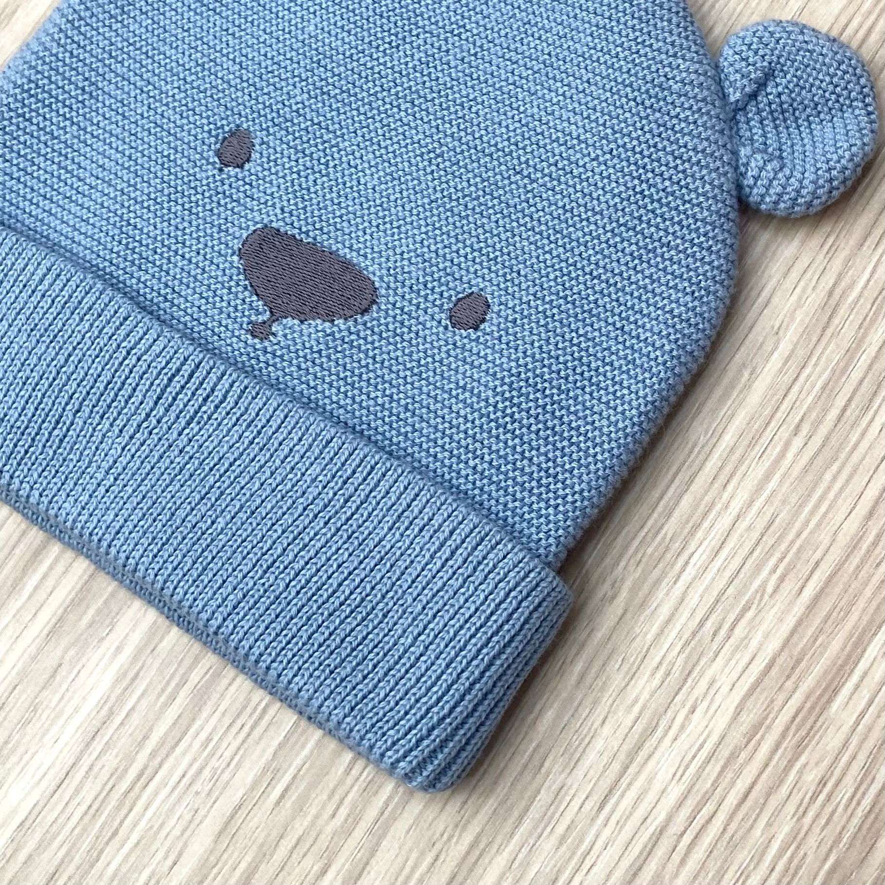 Delizioso cappellino neonato iDO, in maglia dal colore azzurro polvere, realizzato in tessuto morbido e confortevole, ideale per la pelle delicata dei più piccoli. Il design presenta simpatiche orecchiette applicate e un tenero musetto di orsetto ricamato sul davanti, per un look dolce e giocoso. Il risvolto sul bordo garantisce una vestibilità comoda. Perfetto per completare gli outfit dei neonati unendo stile e praticità.