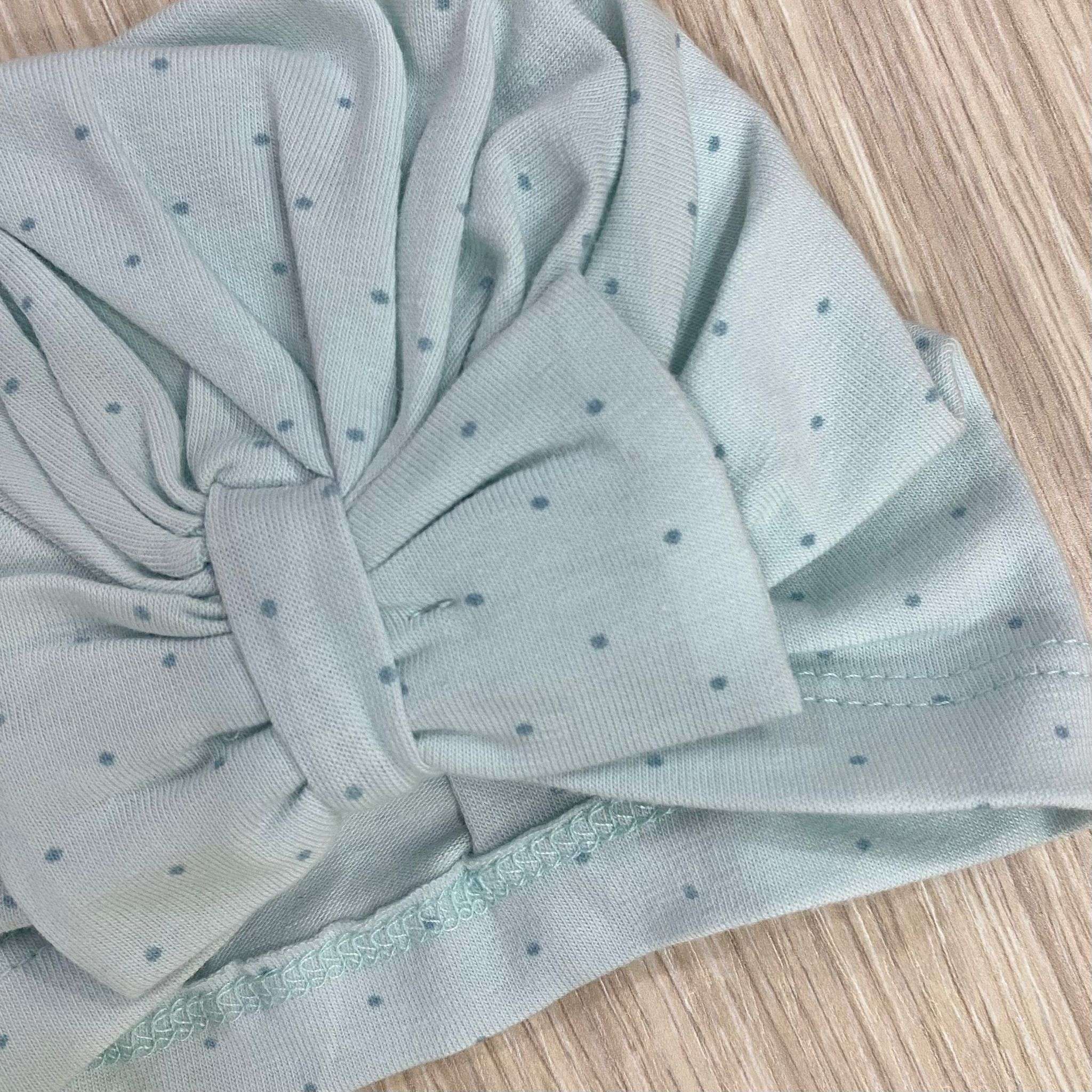 Cappellino turbante neonata in cotone, di colore verde, con pois.