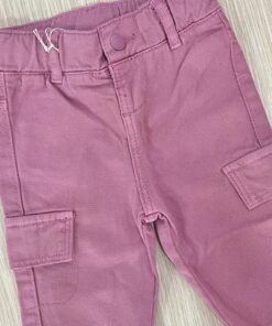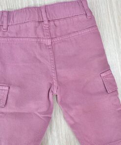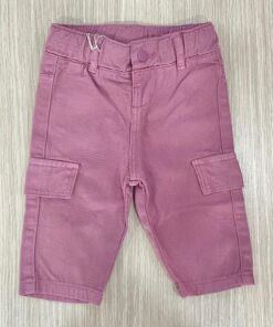 Cargo neonata/bambina in cotone, di colore rosa, con tasconi laterali ed elastico regolabile all’interno.
