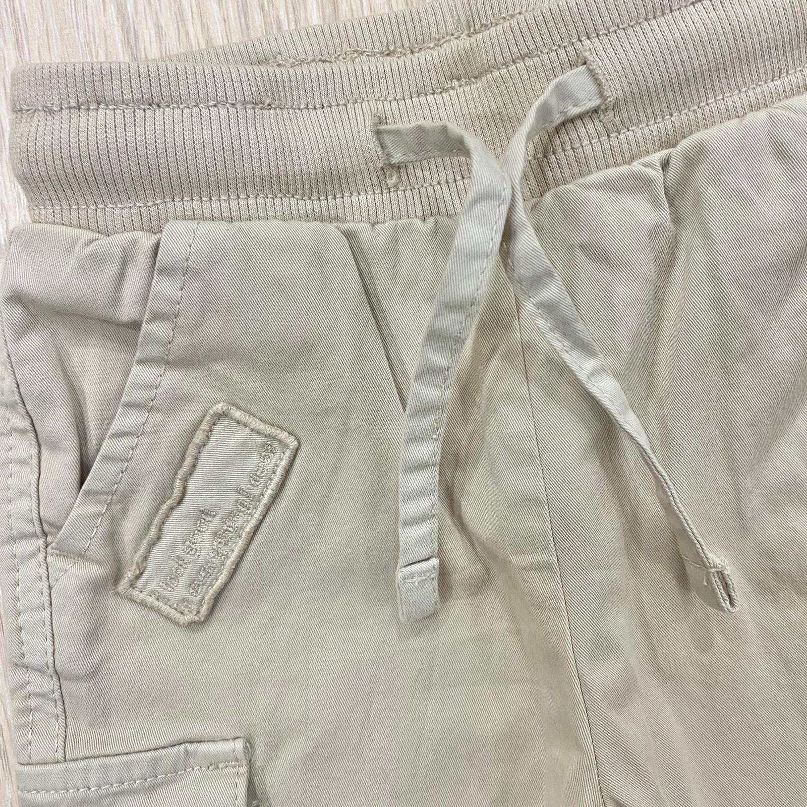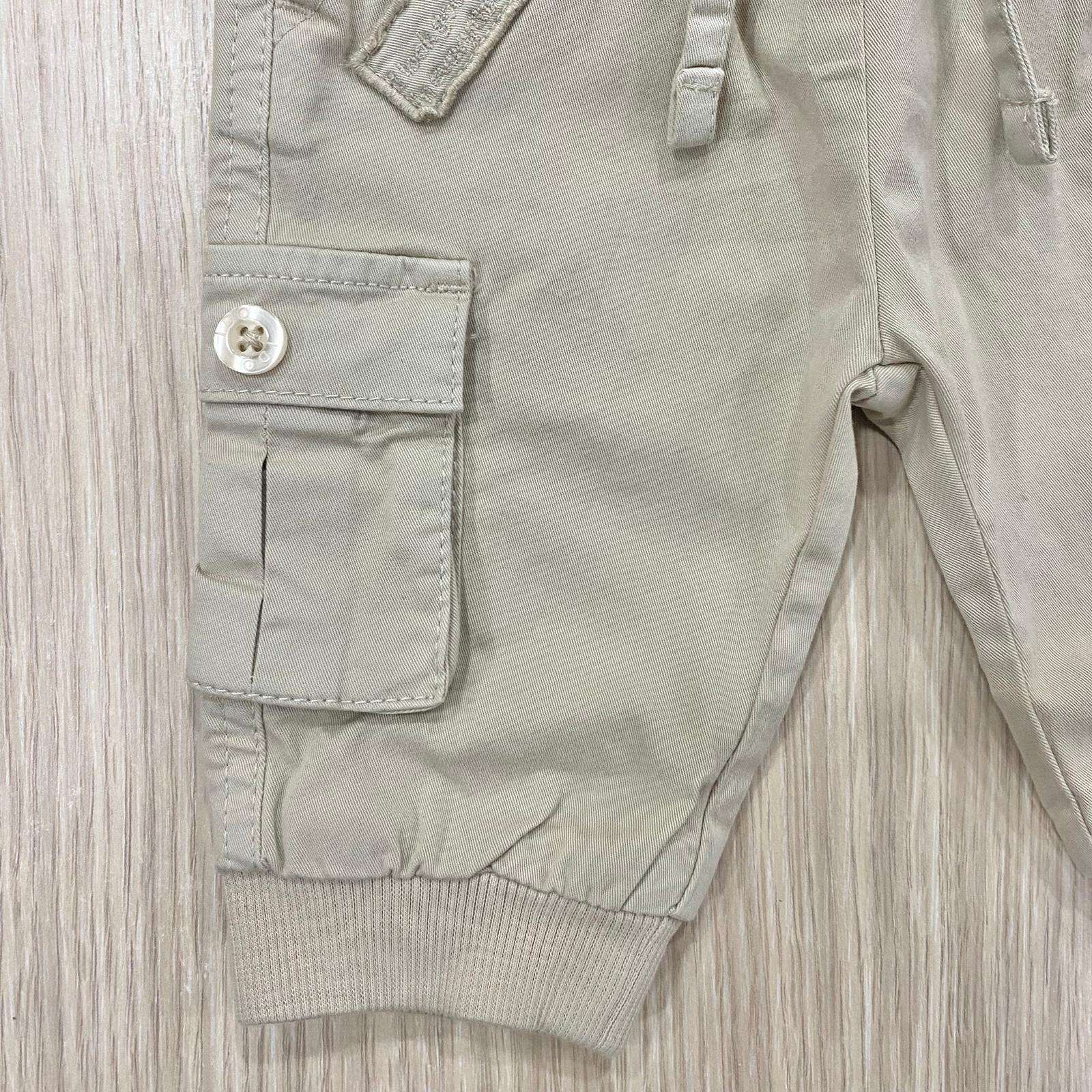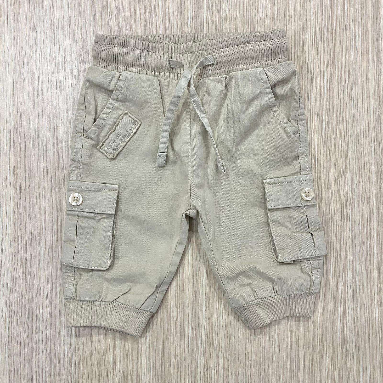 Cargo neonato/bambino in cotone, di colore beige, con tasche laterali ed elastico regolabile. Cargo con polsini.