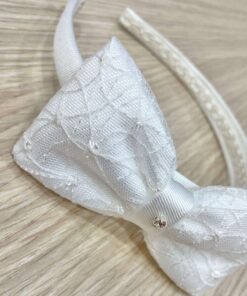 Cerchietto bambina di colore panna, con applicazione di fiocco.