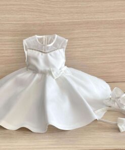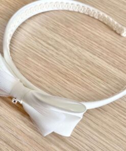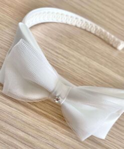 Cerchietto bambina elegante per battesimo/cerimonia, di colore bianco con fiocchetto e applicazione di swarovski.