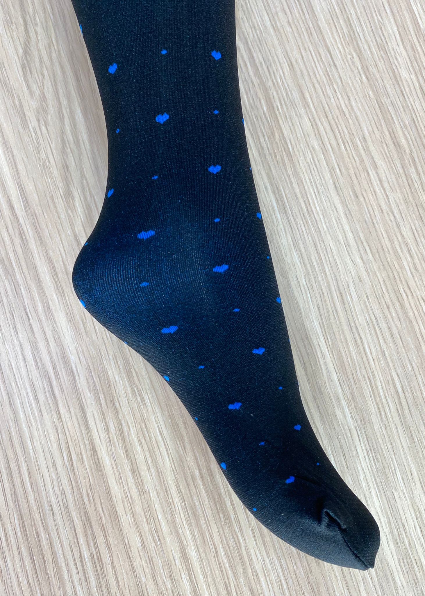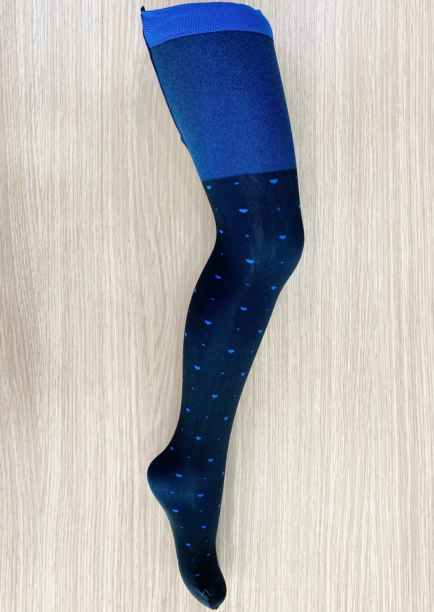 Collant bambina/ragazza in microfibra pesante, di colore nero e blu, con dettaglio pois.