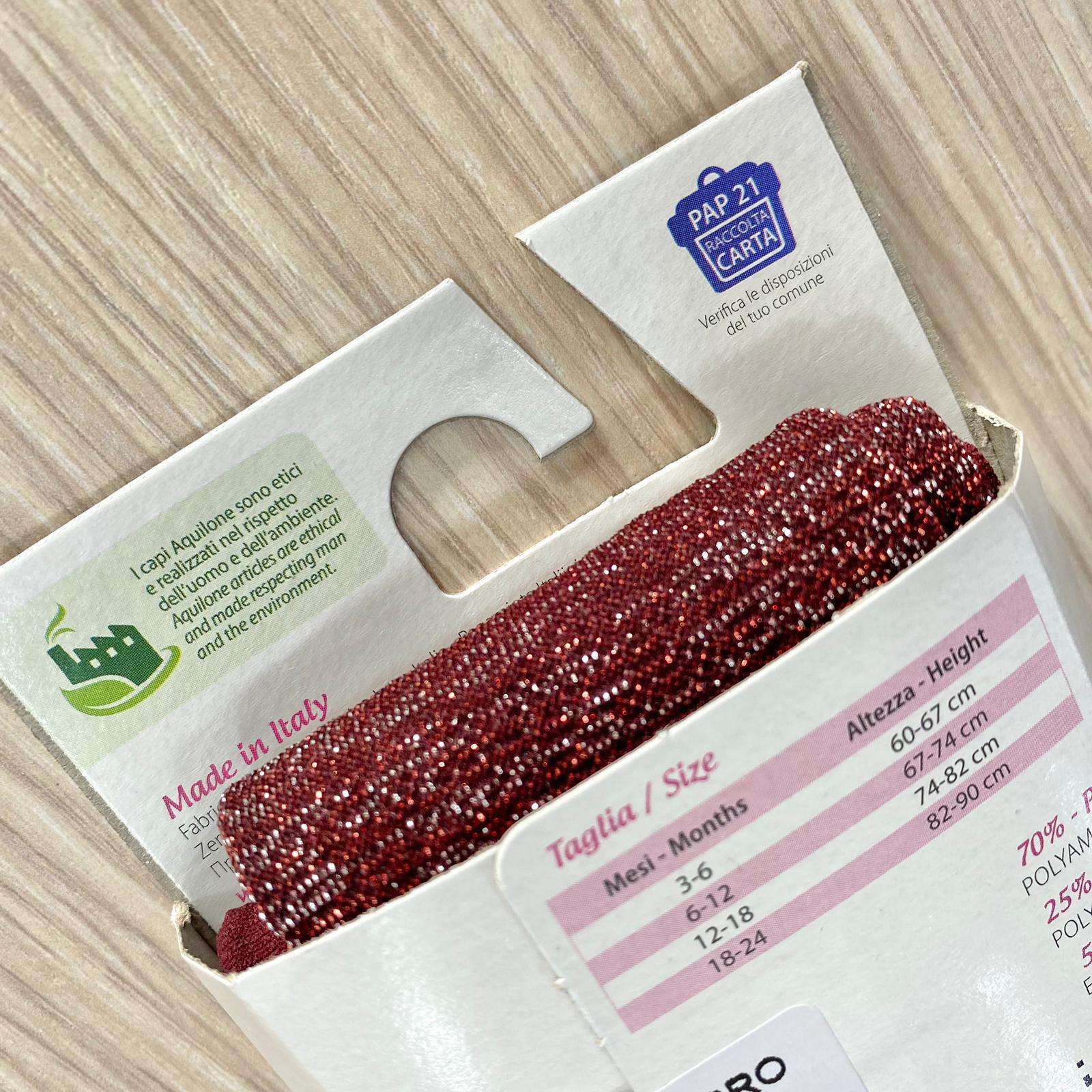 Collant neonata/bambina in microfibra in lurex di colore bordeaux e argento.