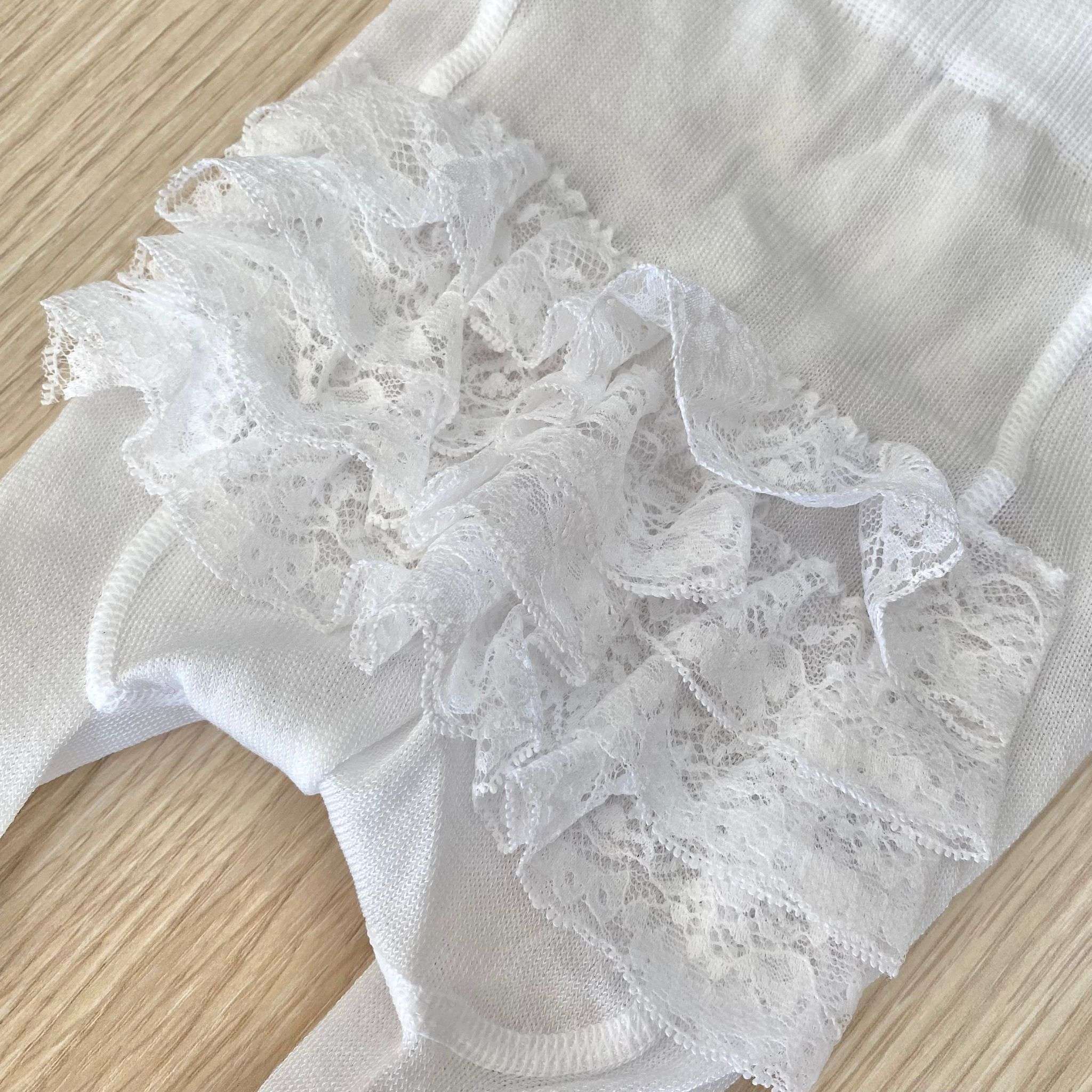 Collant neonata/bambina in cotone, di colore bianco con applicazione di riccetto.