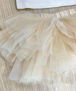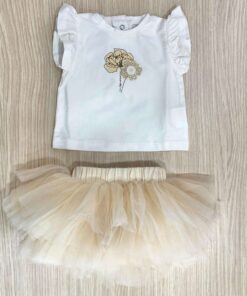 Completo posto da: t-shirt e gonnellina bombata in tulle, con mutandina copripannolino.