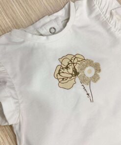Completino due pezzi neonata/bambina di colore bianco ed ecrù, con dettaglio di stampa glitterata.