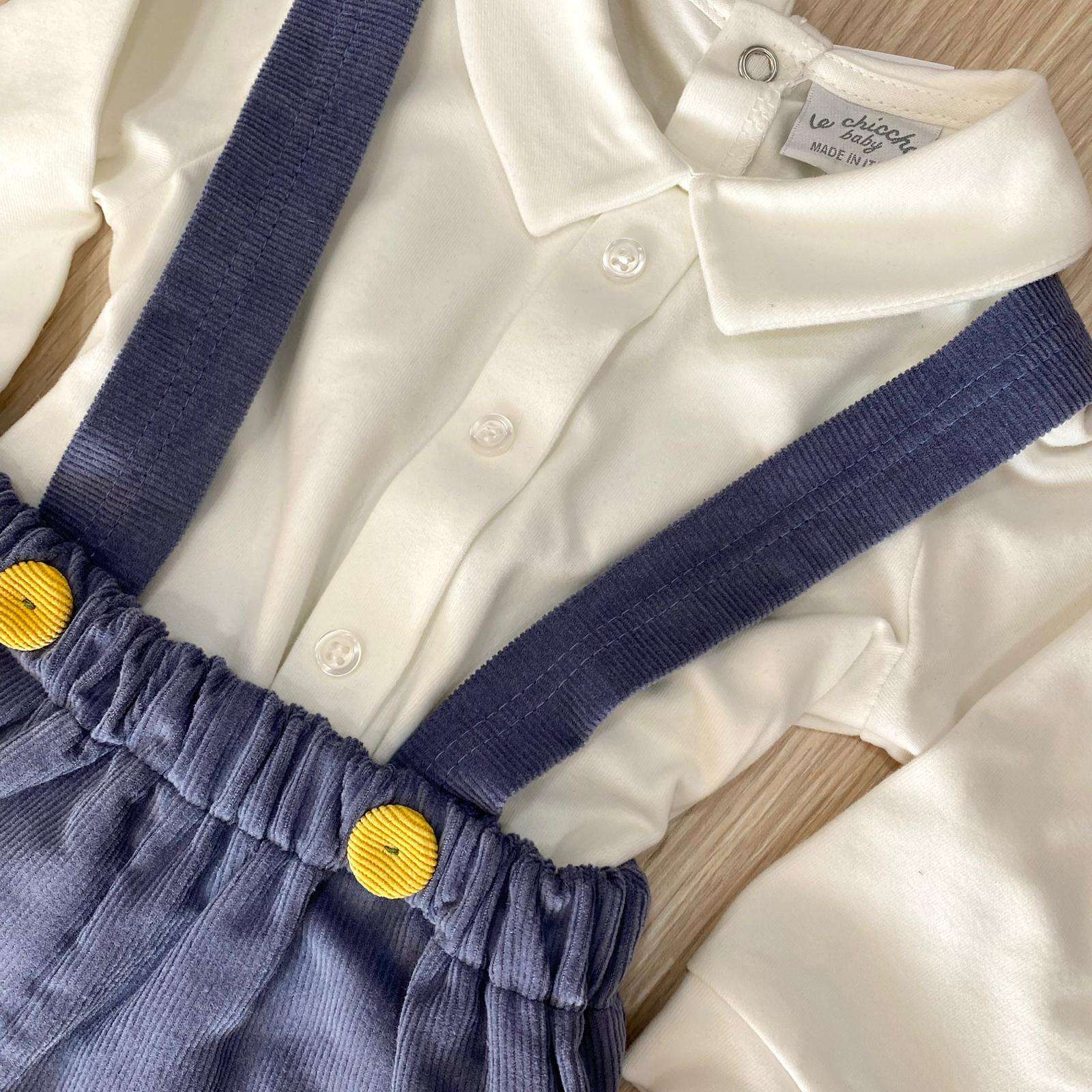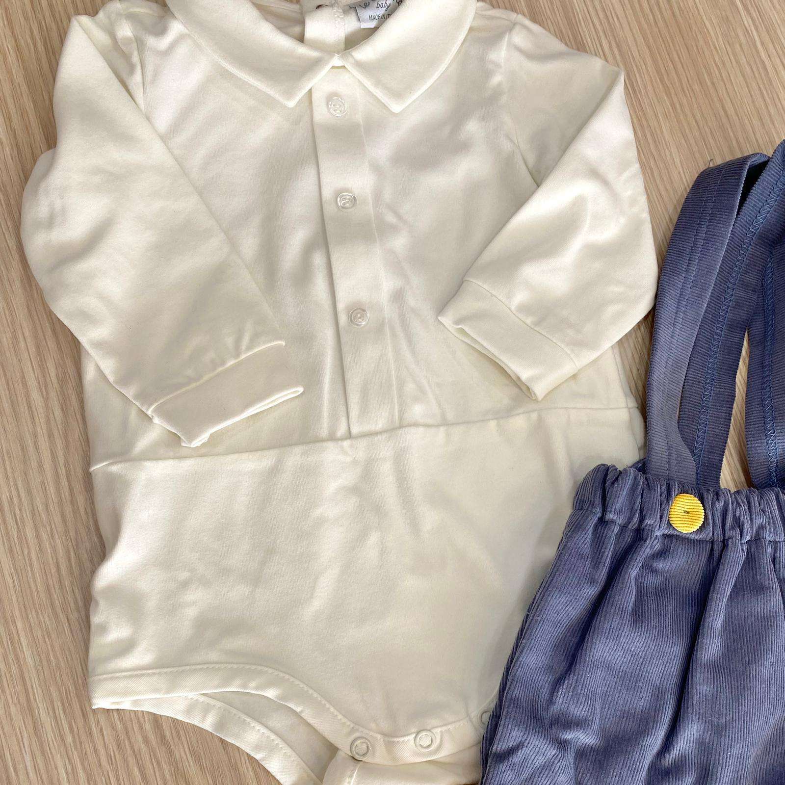 Salopette due pezzi neonato/bambino, di colore panna e jeans.