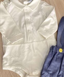 Salopette due pezzi neonato/bambino, di colore panna e jeans.