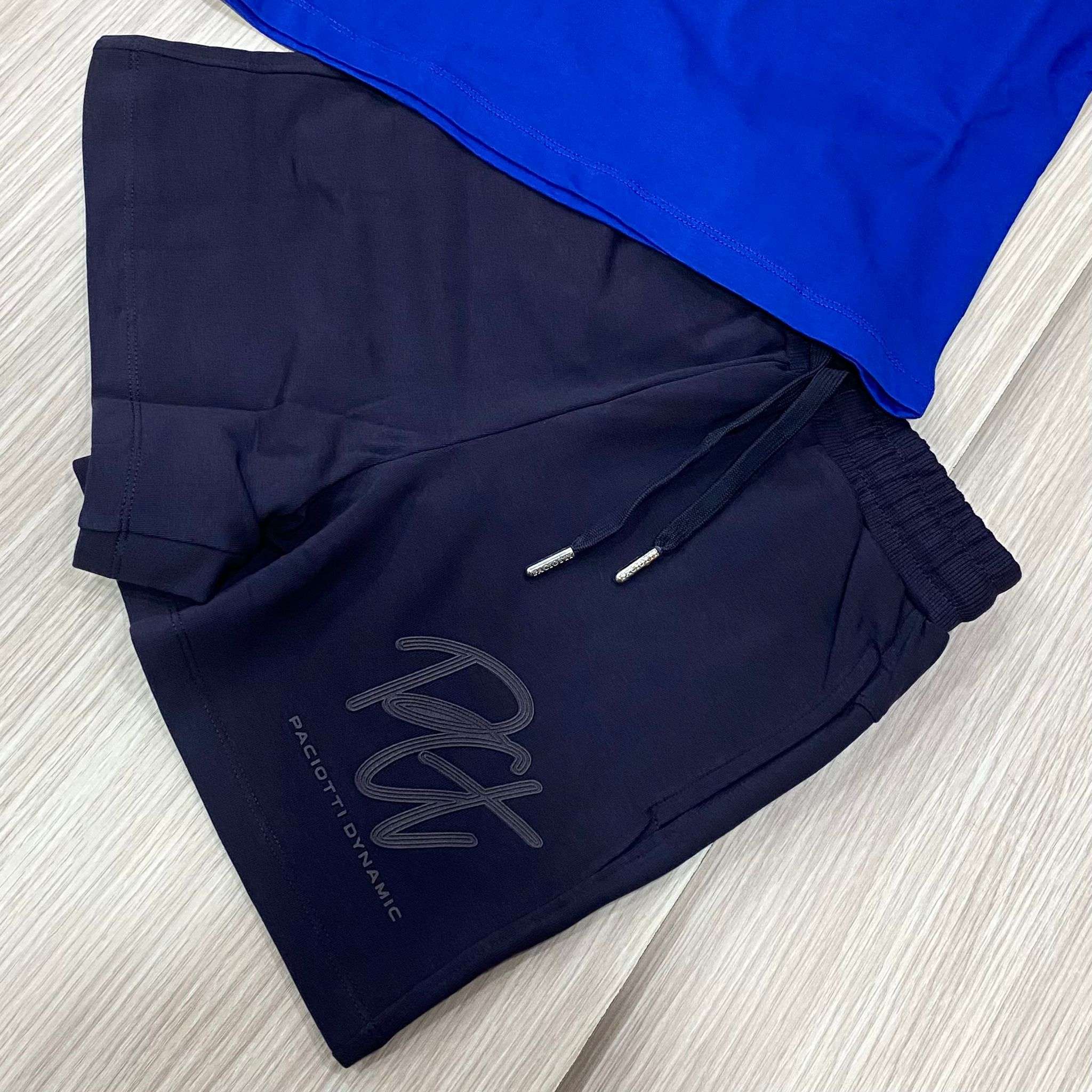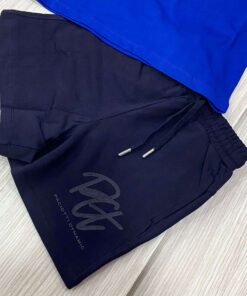 Completo due pezzi firmato Paciotti realizzato in cotone, pensato per chi ama uno stile urbano deciso senza rinunciare alla comodità. Il set è composto da t-shirt a manica corta e pantaloncino coordinato, entrambi in tonalità blu con applicazioni grafiche che donano carattere e personalità al look.