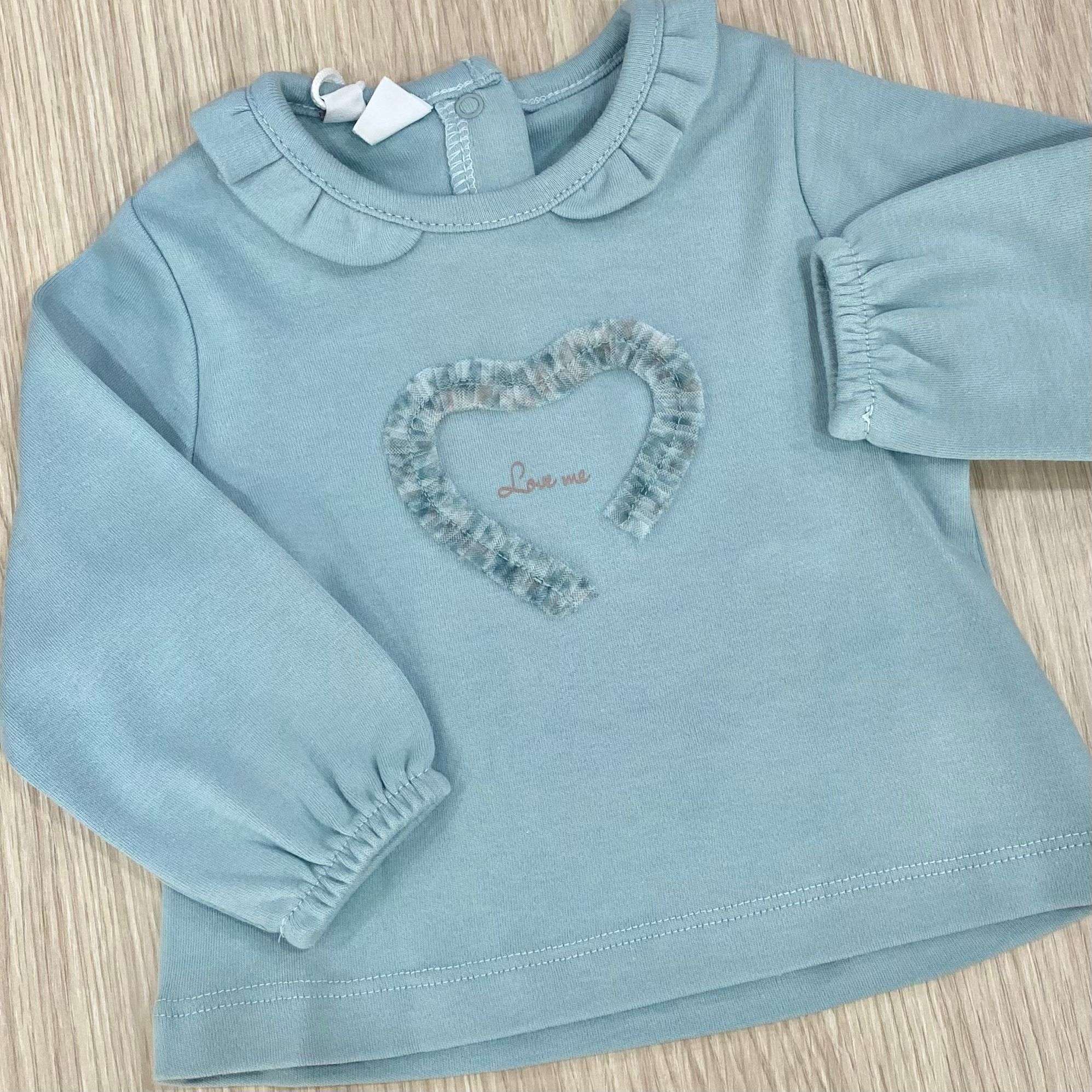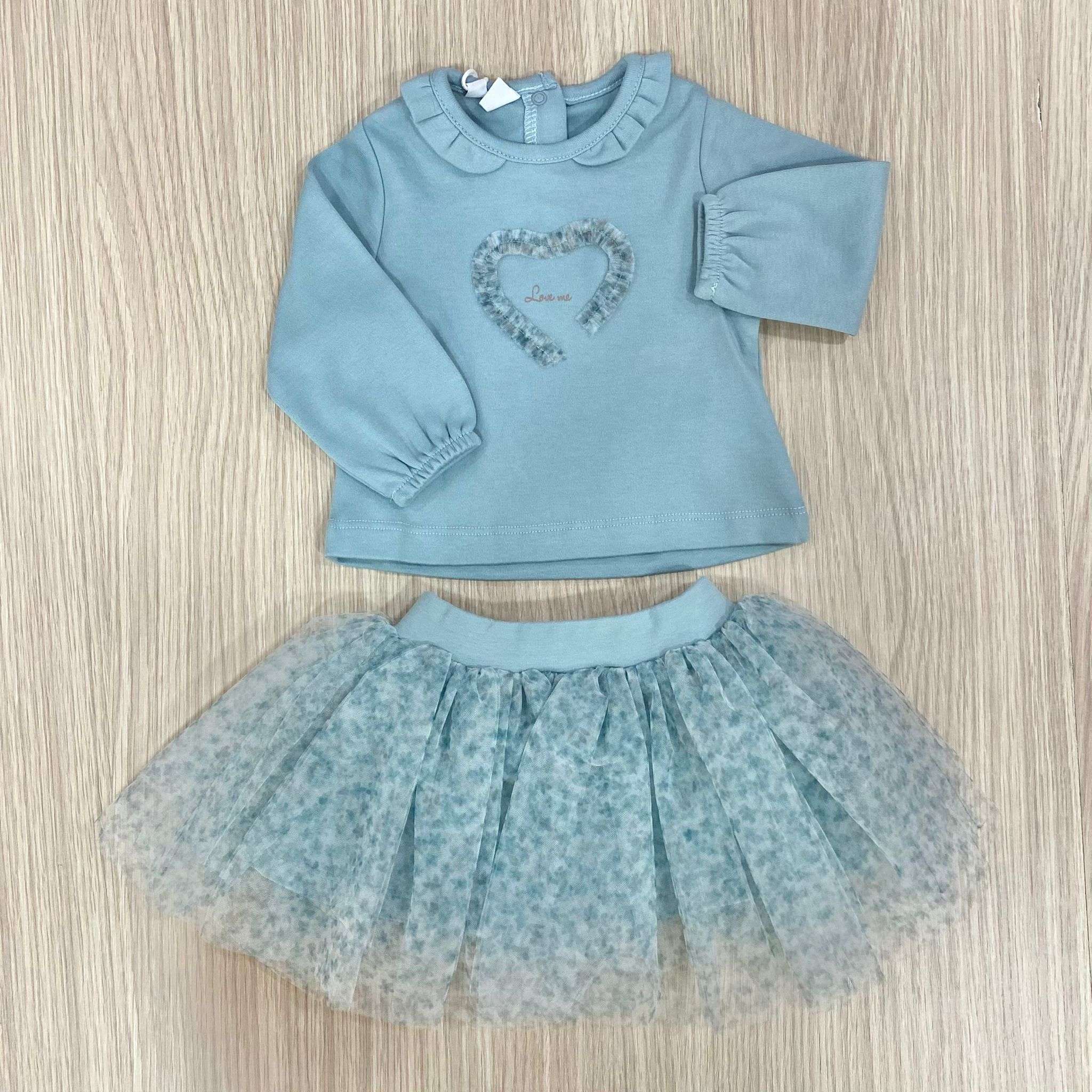 Completo due pezzi neonata/bambina in caldo cotone, di colore verde acqua.