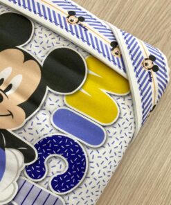Coordinato neonato culla/carrozzina in morbido cotone, di vari colori con disegno Mickey Mouse.
