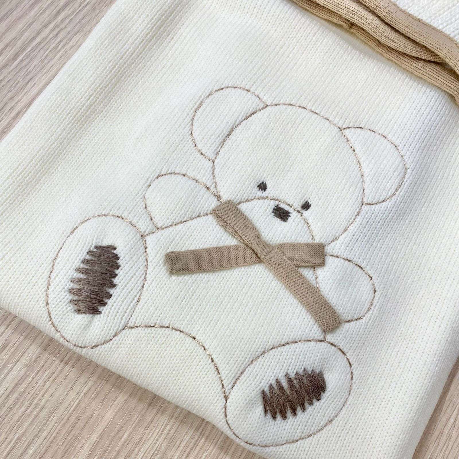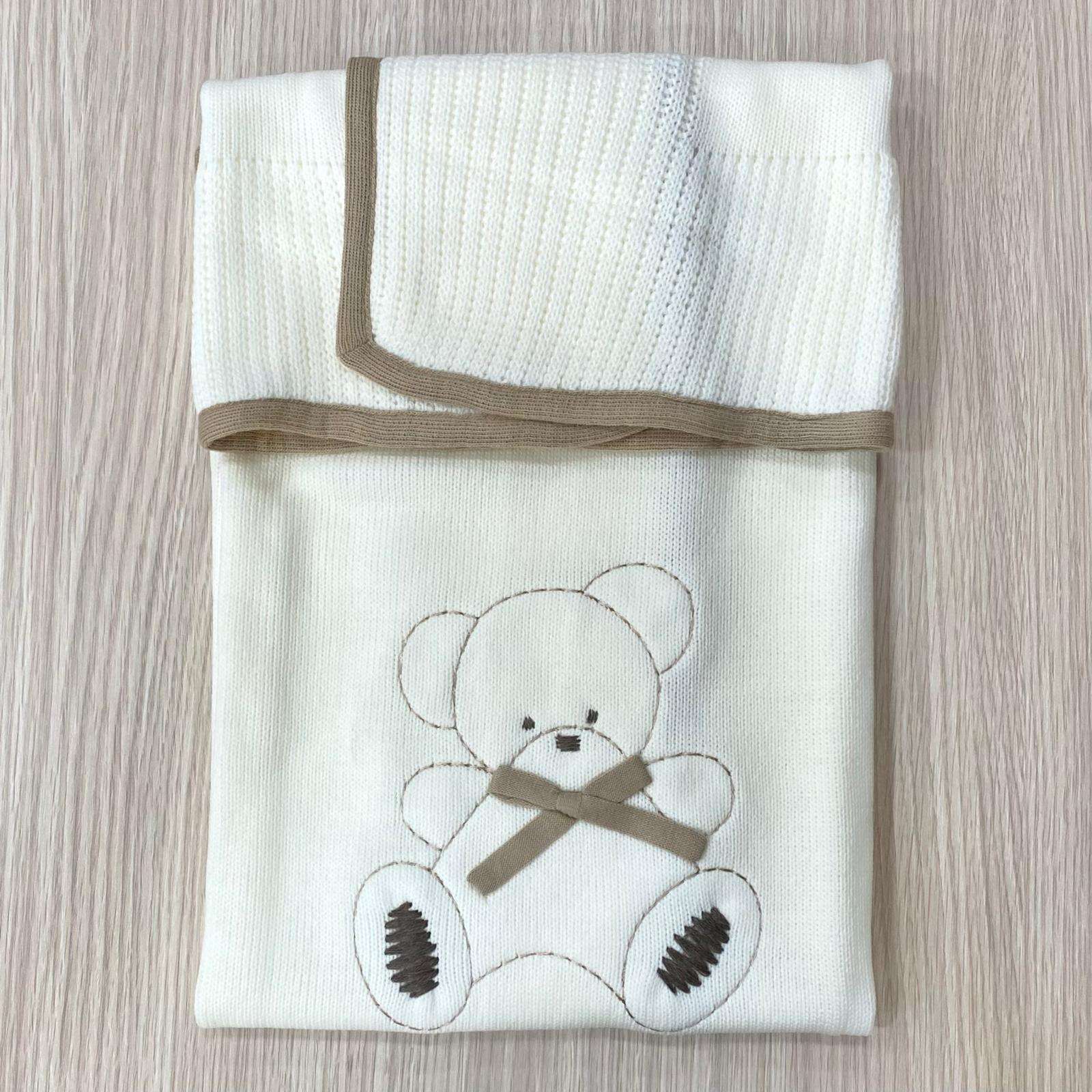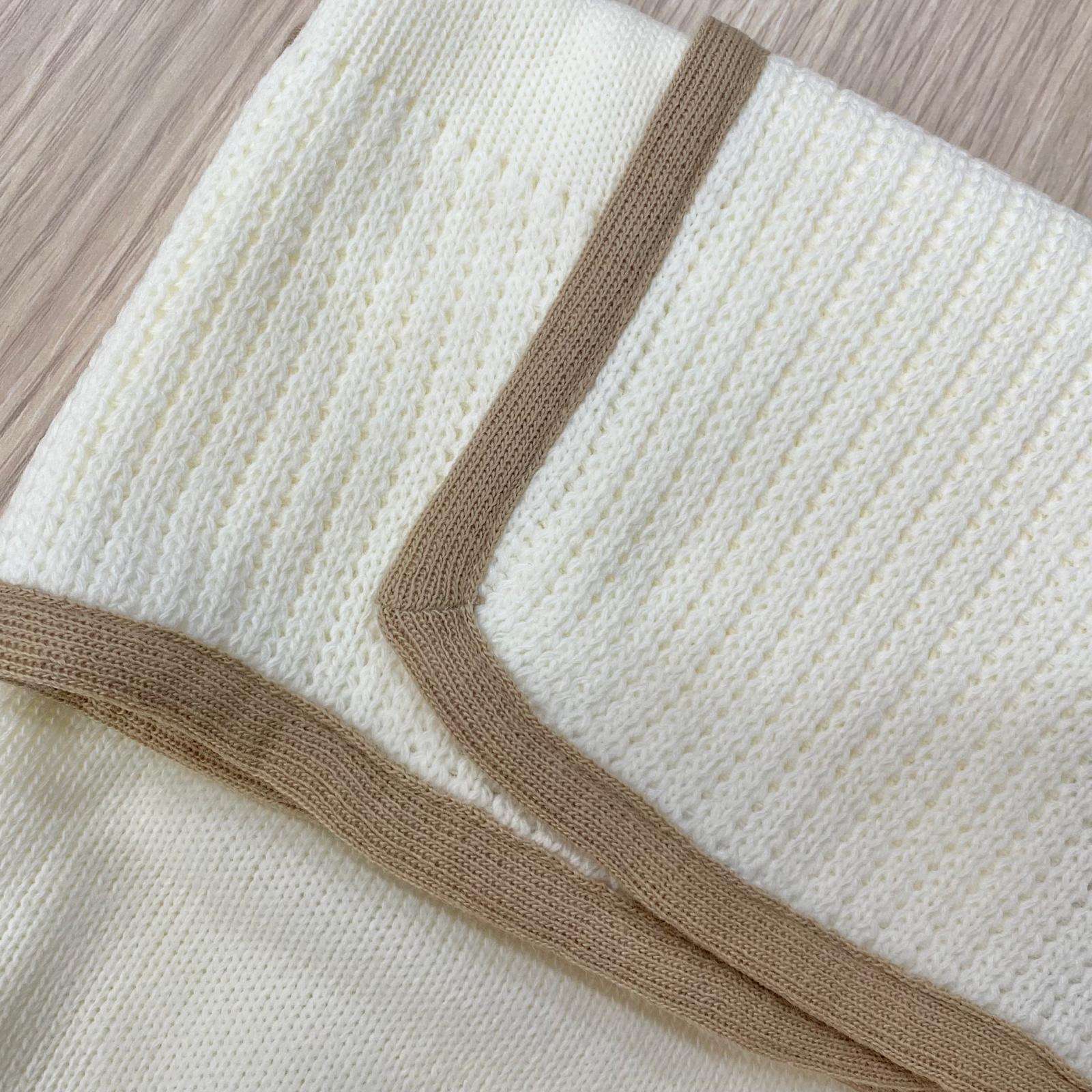 Copertina/scialletto neonato in lana, di colore panna e tortora.