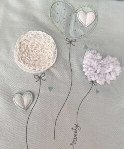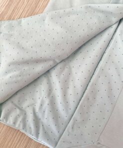 Copertina neonata in cotone, di colore verde acqua, con dettaglio di disegno in rilievo, applicazione di cuoricino in organza.