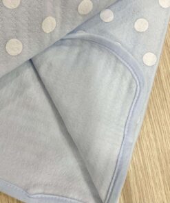 Copertina neonata soft in cotone, di colore azzurro con pois di colore bianco.