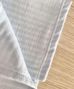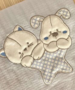 Copertina culla/carrozzinna neonato in caldo cotone, di colore azzurro, con disegno ricamato.