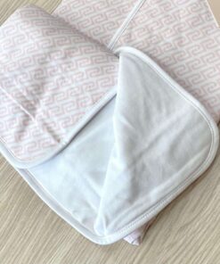 Copertina/scialletto LIU•JO neonata in cotone, di colore bianco, con loghi di colore rosa.