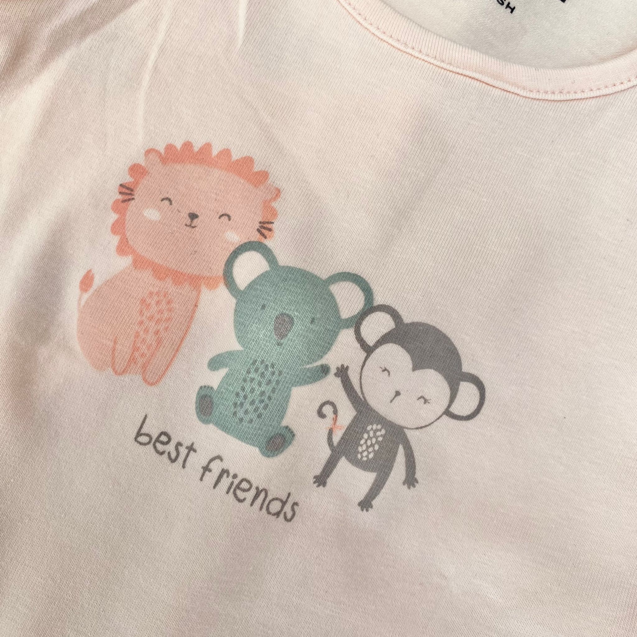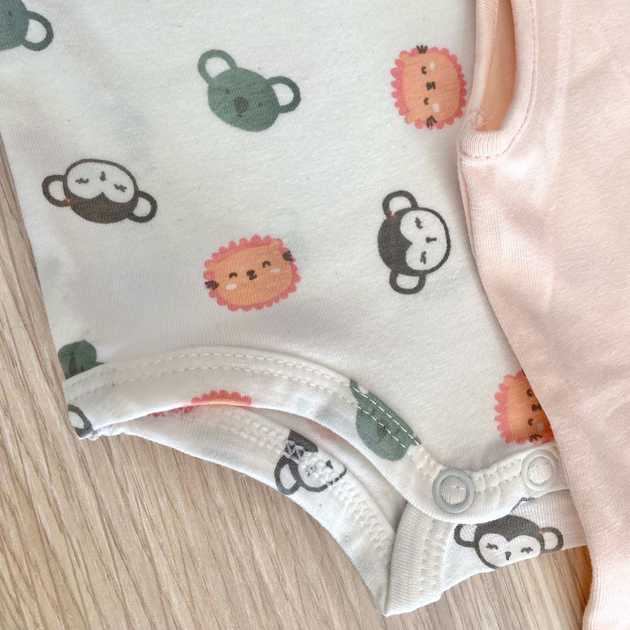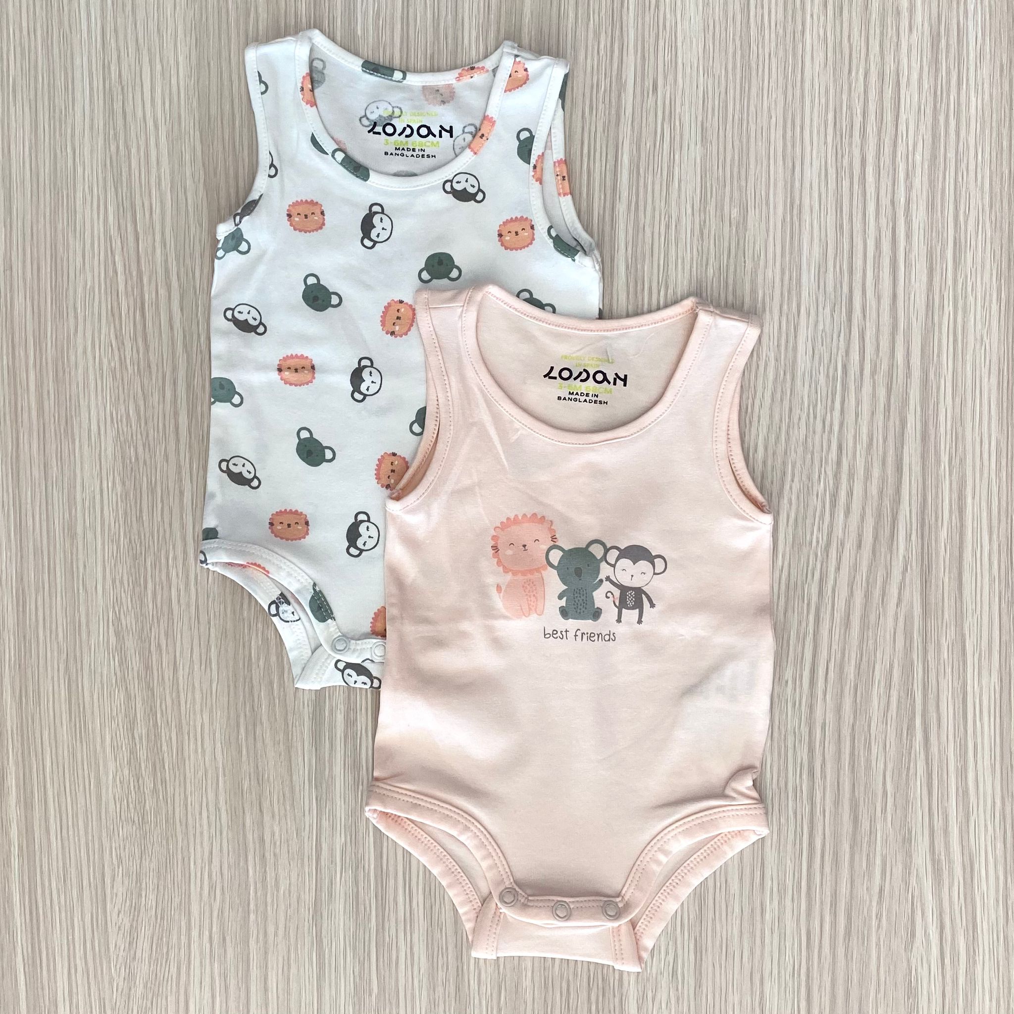 Coppia body neonata/bambina in cotone, di colore rosa e panna con disegno di vari colori.